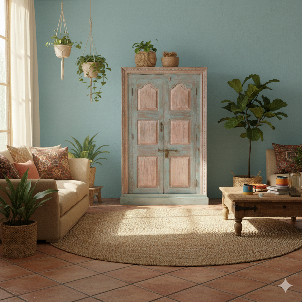 Dieser in Shabby Chic Optik gestaltete Schrank aus massiv Teak im mediterranem Stil erhält seine besondere Wirkung durch leichte Unregelmäßigkeiten im Holz. Diese entstehen durch das verwendete Edelholz mit seinen verschiedenen Farben und Strukturen, welche diesem Stück einen eigentümlichen Charakter verleihen und es zu einem Unikat machen. Maserung und Farbton des Holzes tragen sehr zum optischen Wert dieses Möbels bei, das sowohl dekorative Möglichkeiten als auch genügend Stauraum bietet.