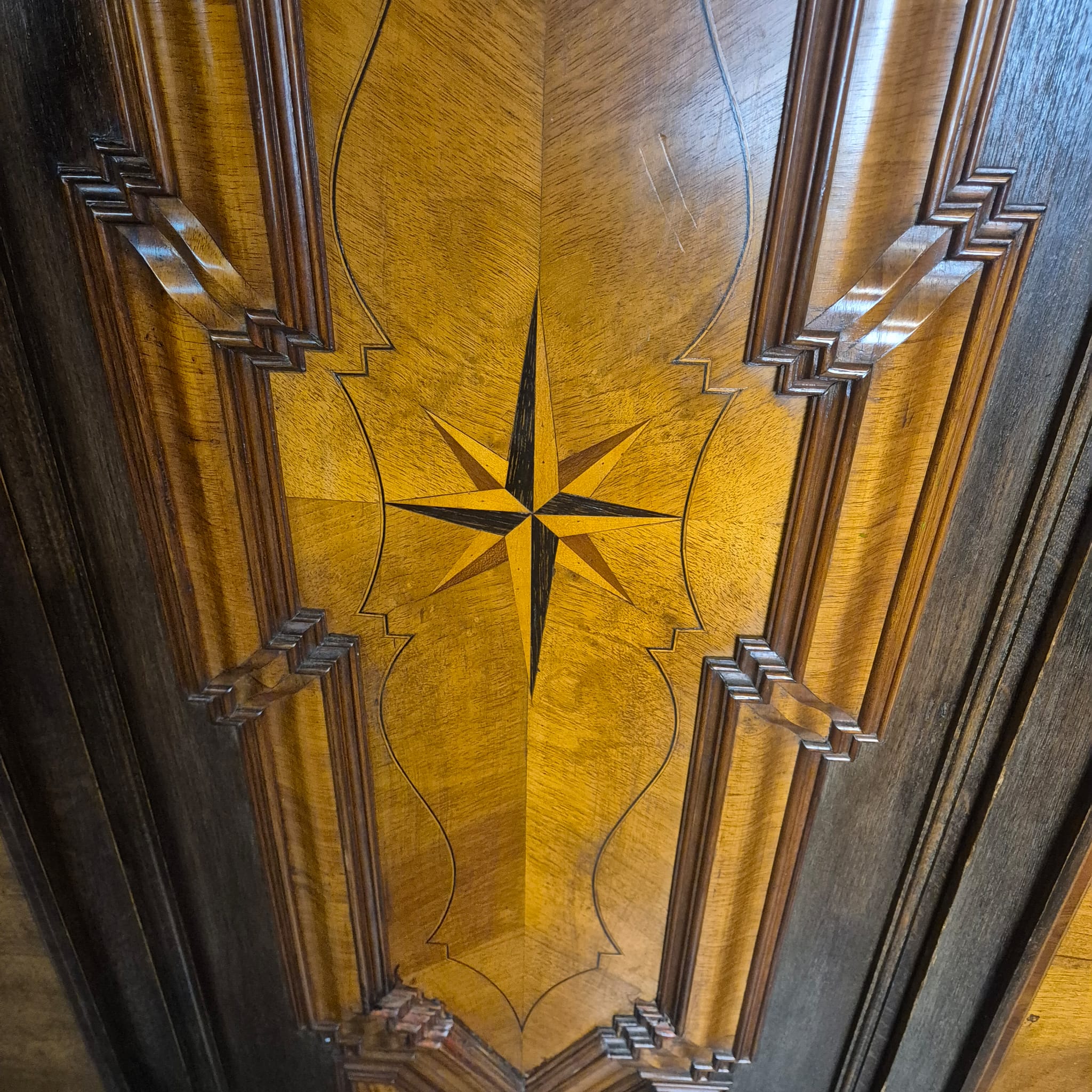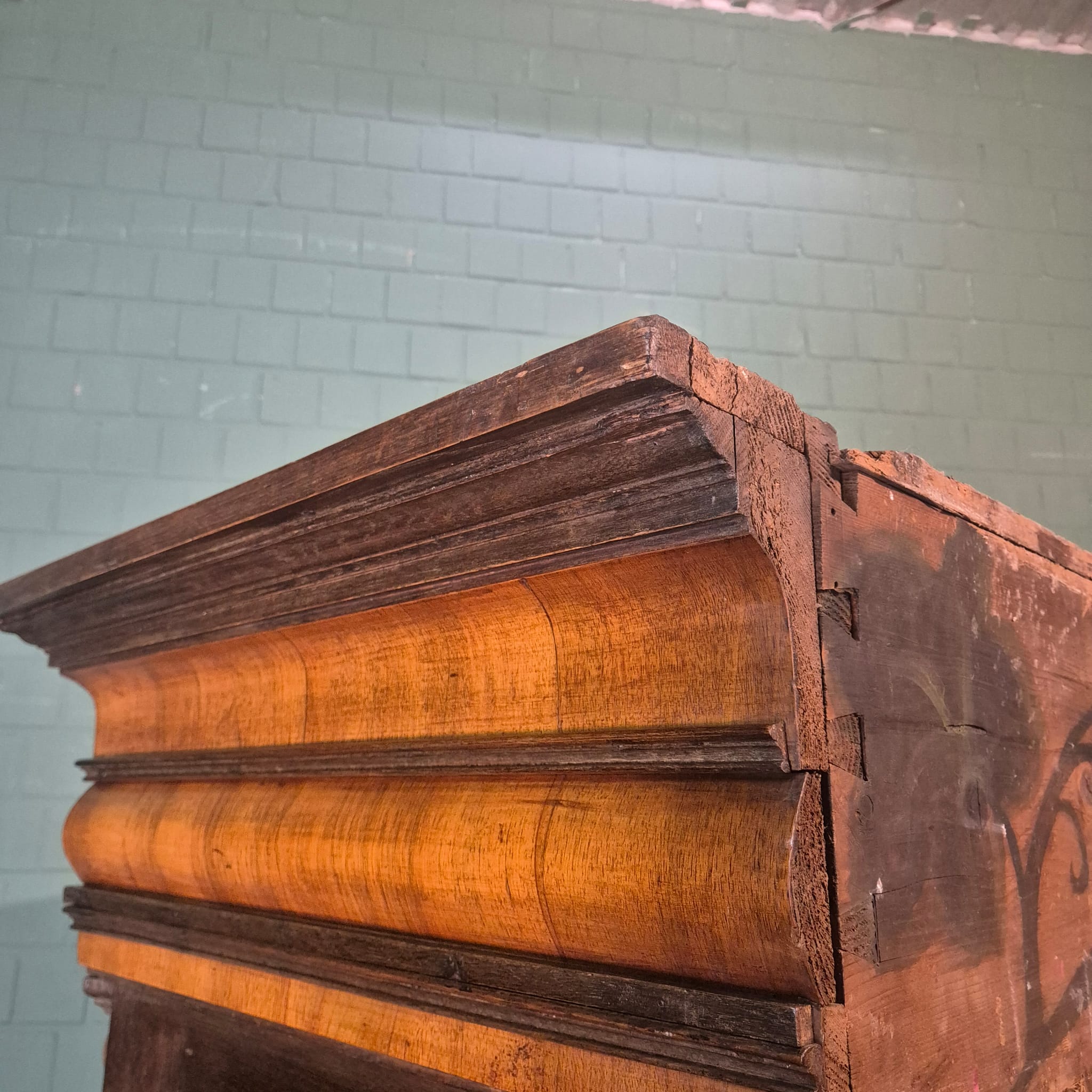 Restaurierter Neubarock Schrank in Nussbaum auf massiv Eiche furniert von ca. 1860. Der Schrank befindet sich in einem sehr guten Zustand und weist nur minimale Gebrauchsspuren auf. Zerlegbar (7-teilig).