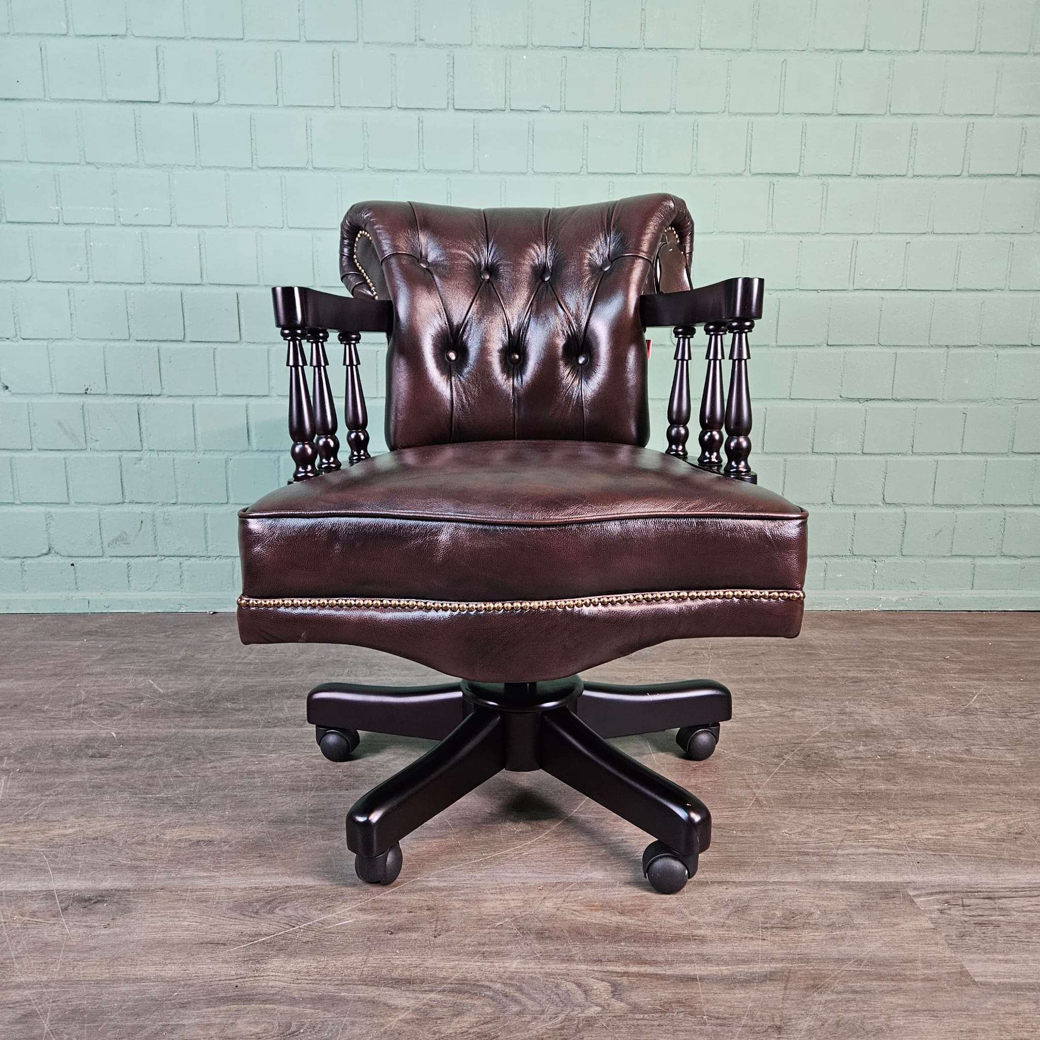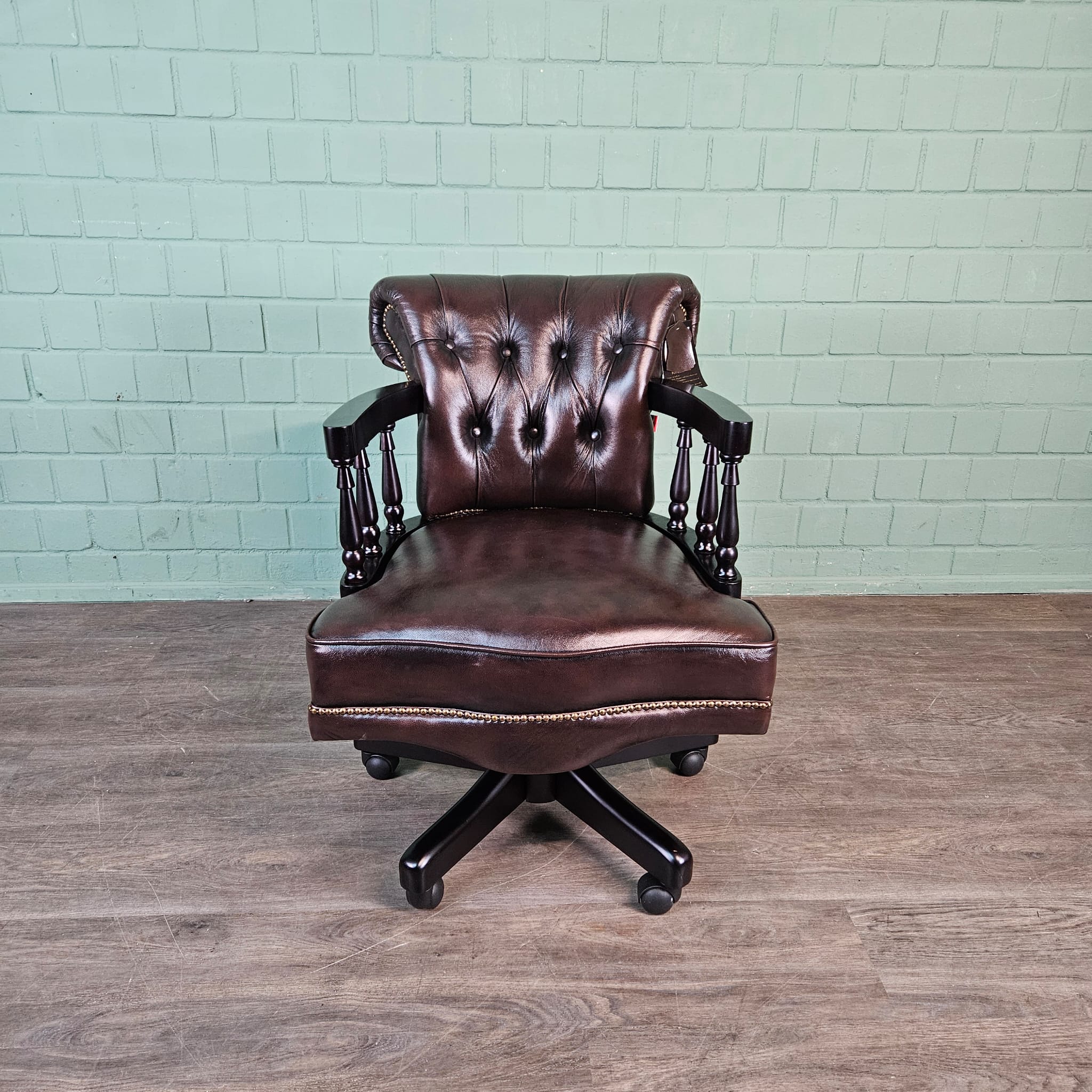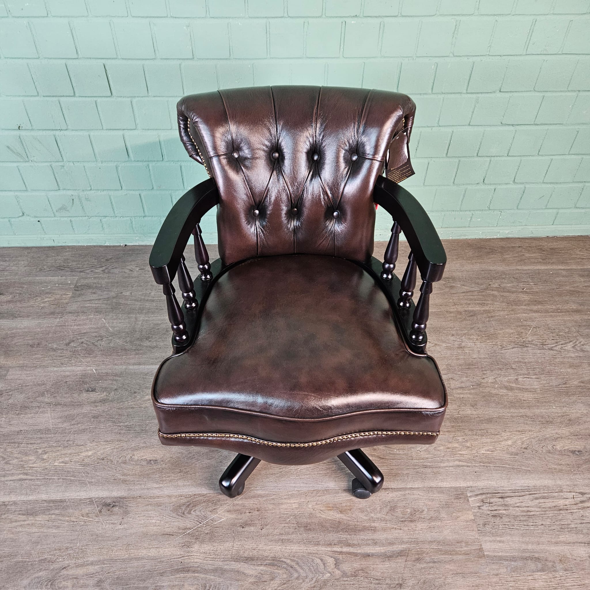 Eleganter Chesterfield-Bürostuhl in Braun – Echtes Leder