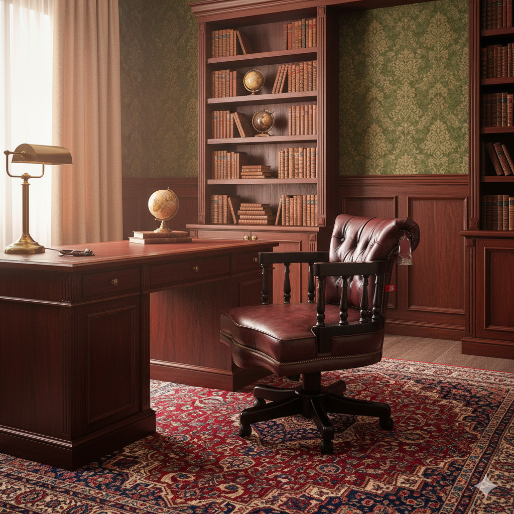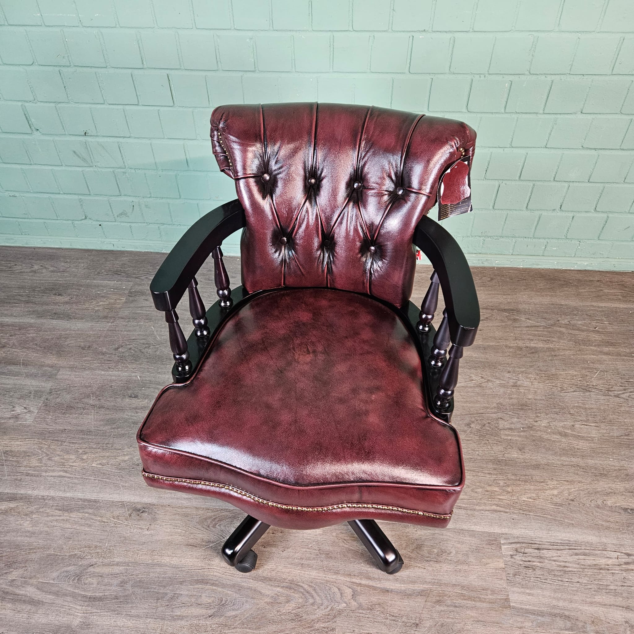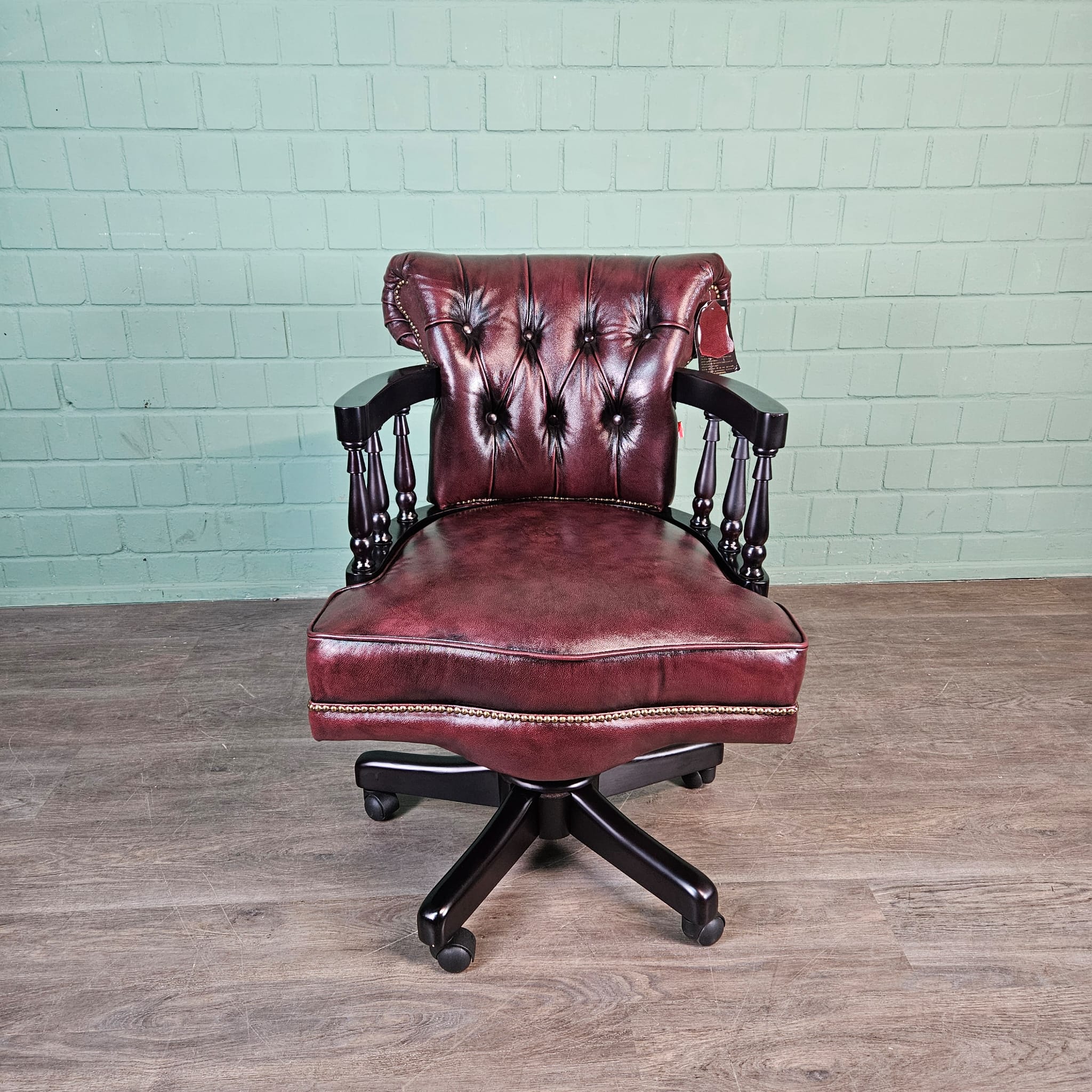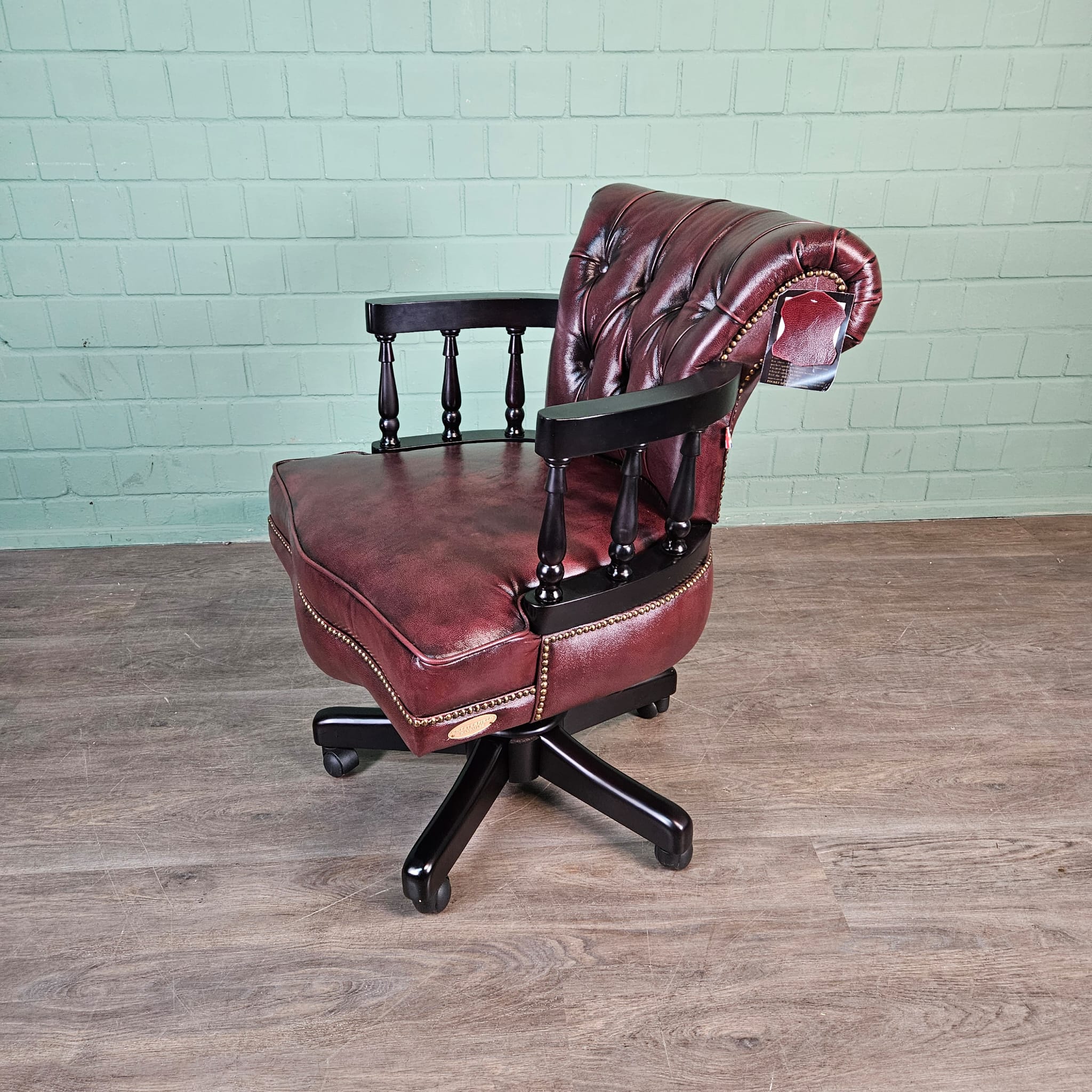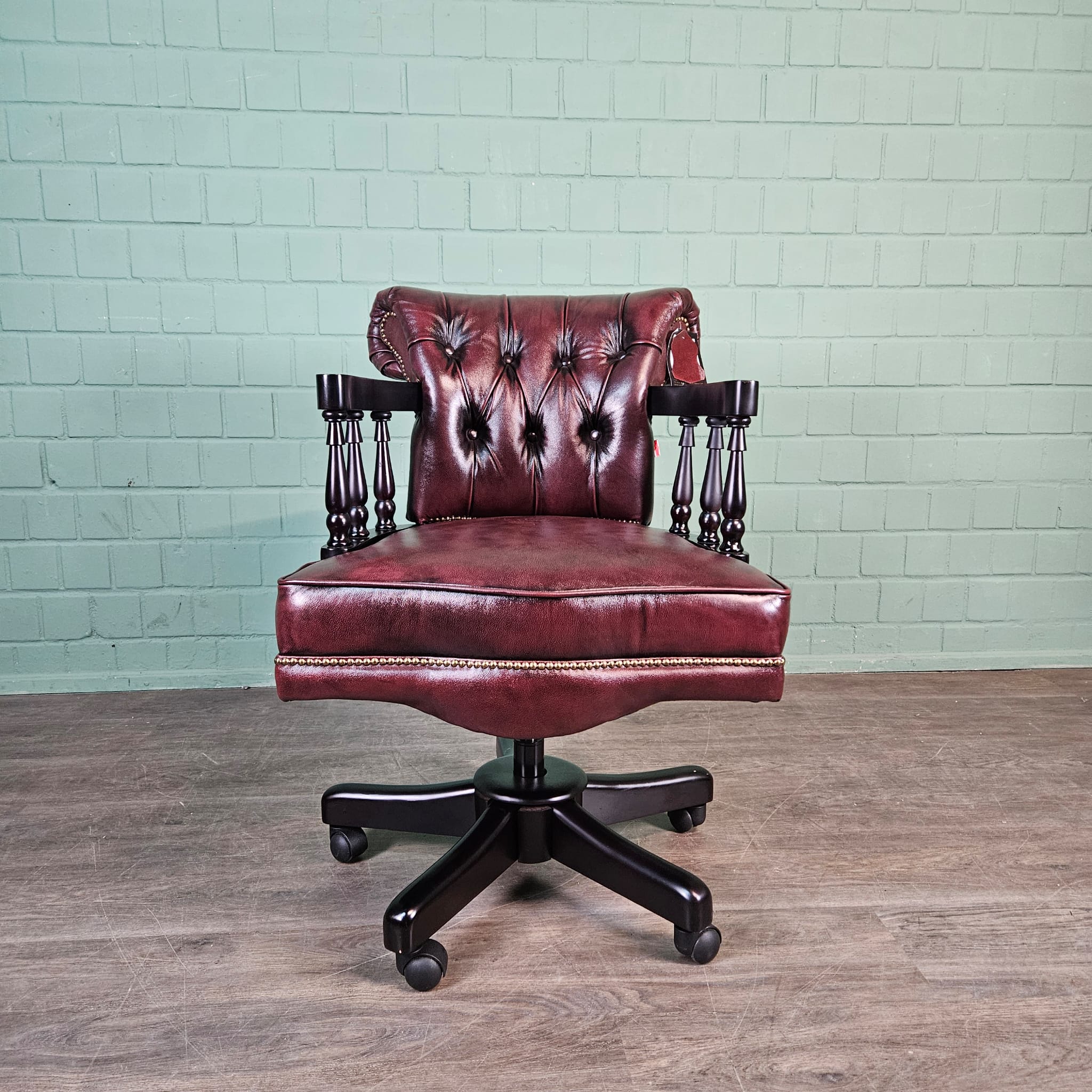 Eleganter Chesterfield-Bürostuhl in Rotbraun – Echtes Leder