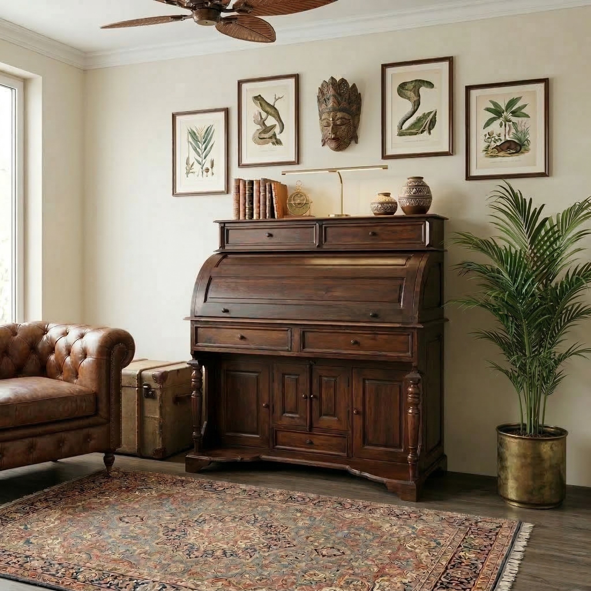 Sekretär Schreibtisch Kolonialstil Teakholz 1,05 m