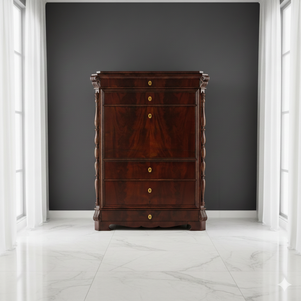 923,53€ Exkl. MwSt.Restaurierter Biedermeier Sekretär in Mahagoni auf massiv Eiche furniert und von Grund auf Schellack poliert von ca. 1860. Der Sekretär befindet sich in einem sehr guten Zustand und weist nur minimale Gebrauchsspuren auf. Er ist frei von Wurmbefall.