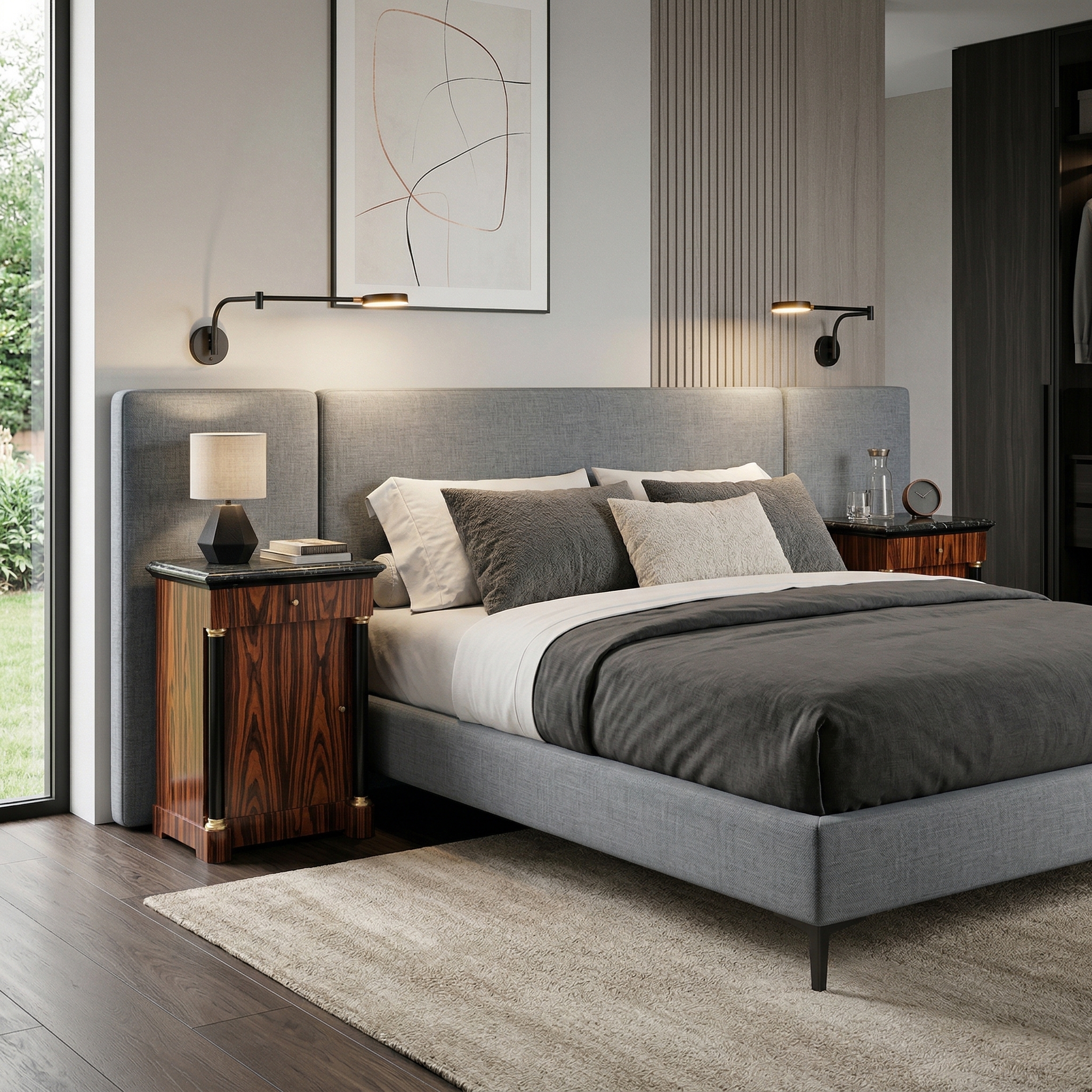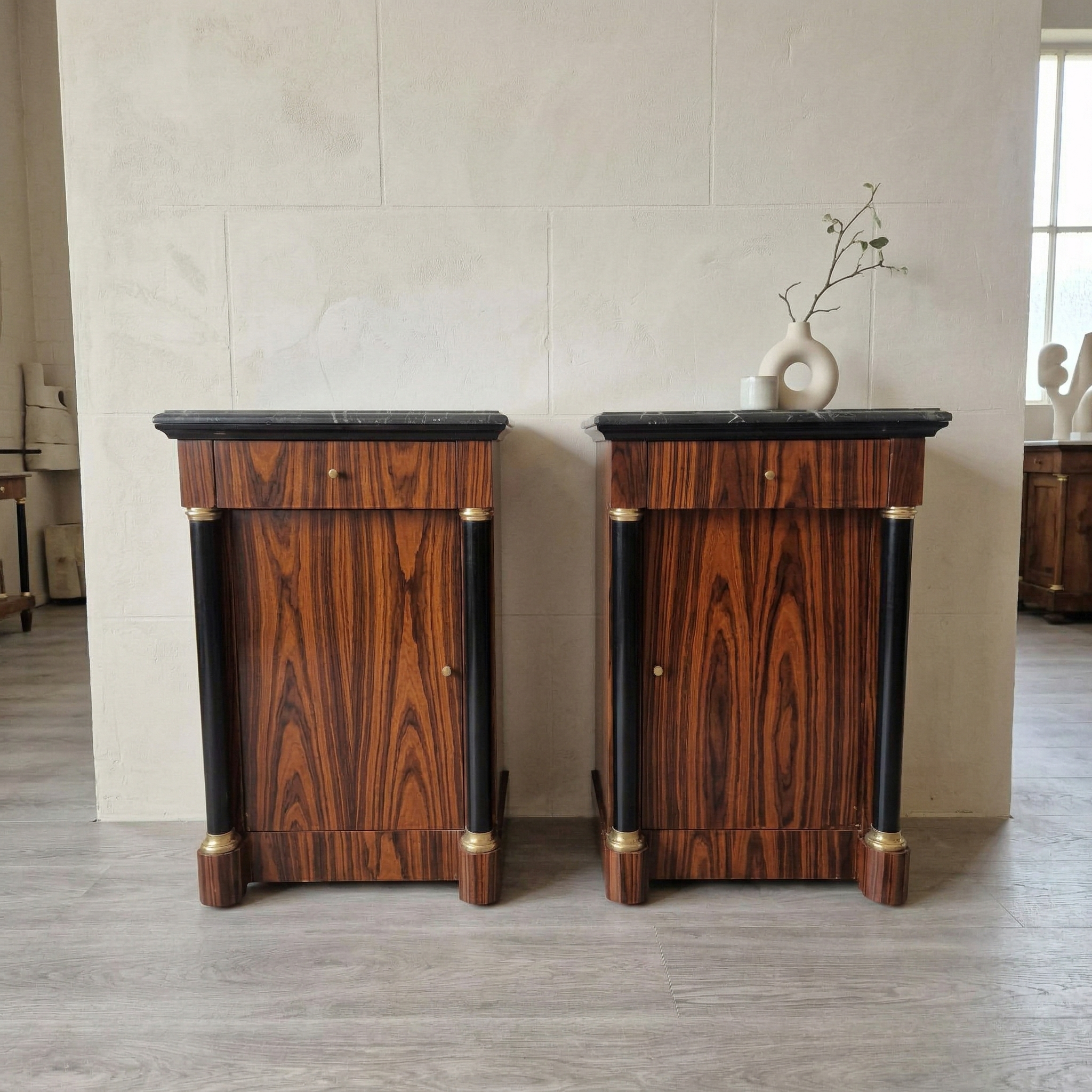 Exklusives Paar Nachttische im Empire-Stil – Nussbaum & Marmor
