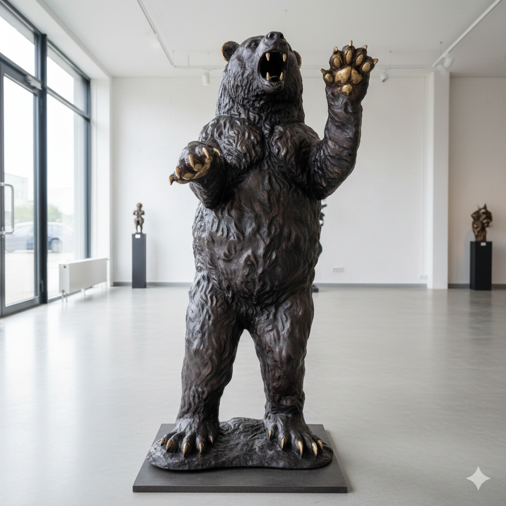 Detailgetreue und formschöne Darstellung eines Bären aus Bronze.