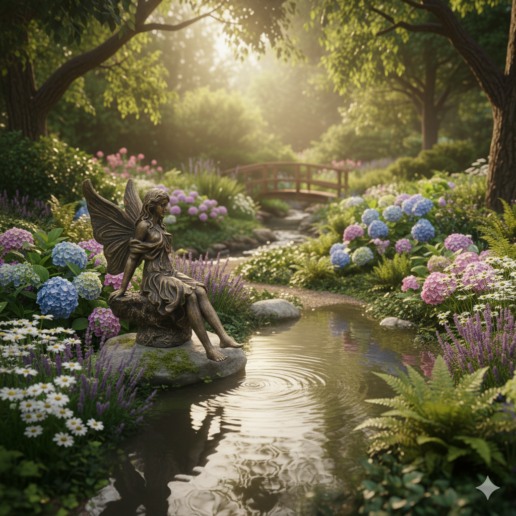Verleihen Sie Ihrem Garten, Ihrer Terrasse oder einem besonderen Platz in Ihrem Heim einen Hauch von Magie mit dieser bezaubernden Bronzefigur einer Elfe. Die Skulptur fängt einen Moment märchenhafter Ruhe und Anmut ein, ideal für alle, die das Fantastische und Detailreiche lieben.