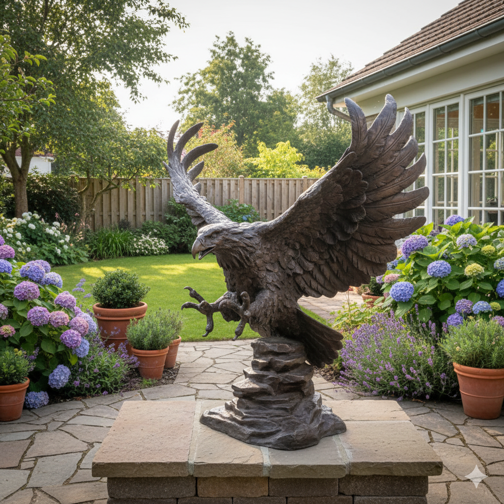 - Dynamische Darstellung: Die Skulptur fängt den Moment des Fluges ein und vermittelt ein Gefühl von Bewegung und Energie.