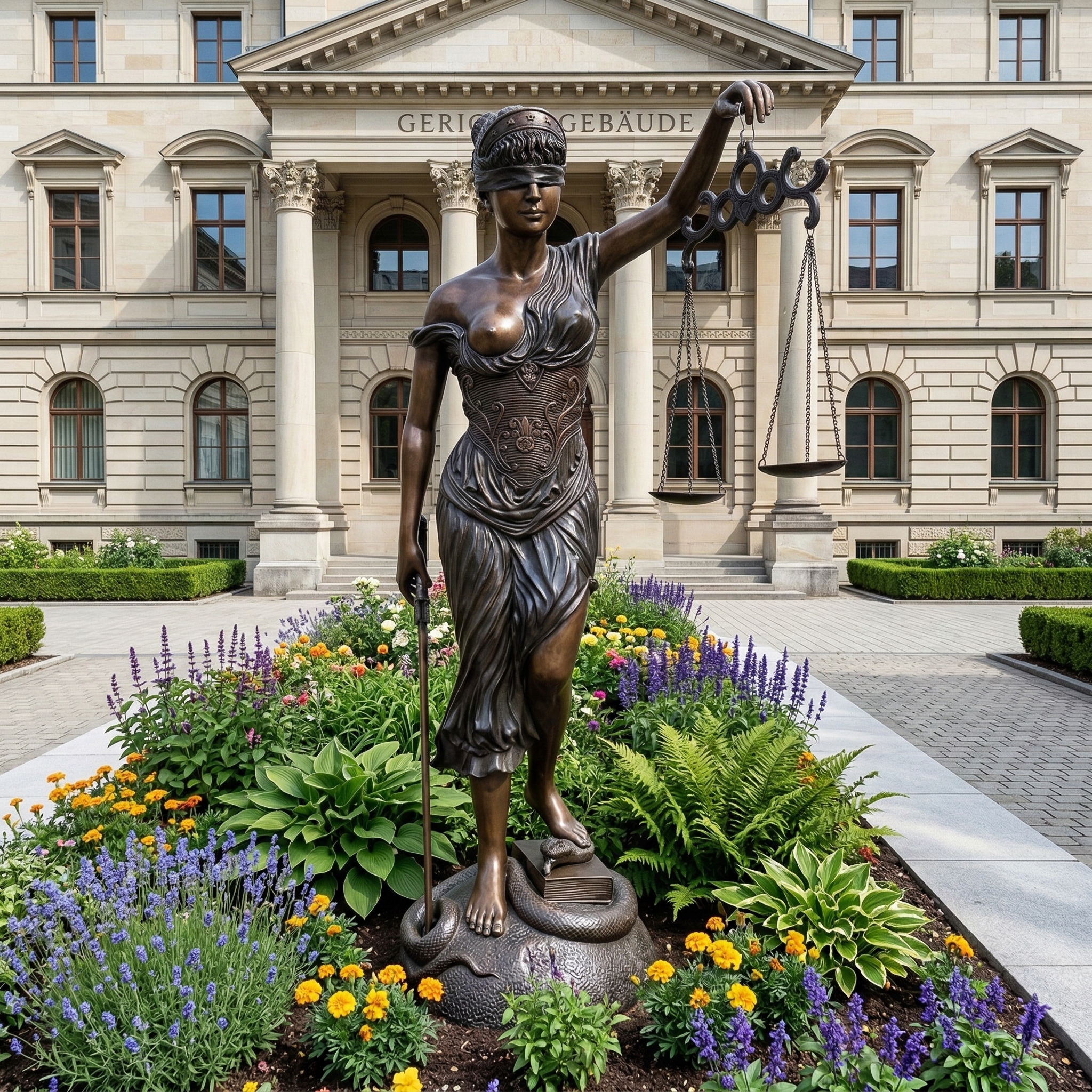 Majestätische Bronzeskulptur der Justitia – Symbol der Gerechtigkeit