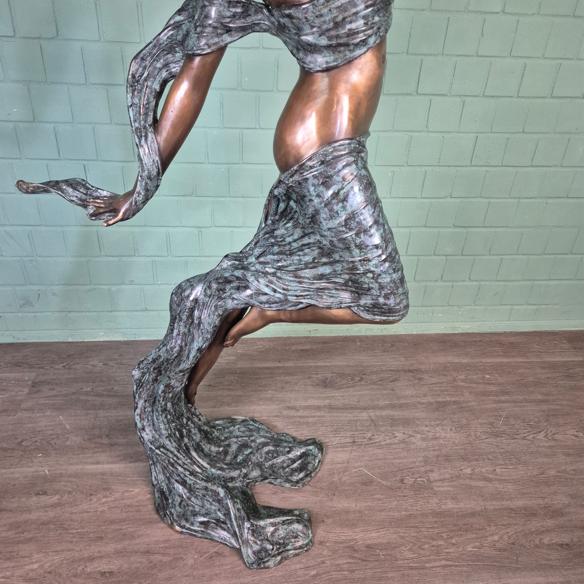 Material & Qualität: Hochwertige Bronze mit einer einzigartigen Patina, die die Textur des fließenden Stoffes und die Muskelspannung der Figur eindrucksvoll hervorhebt.