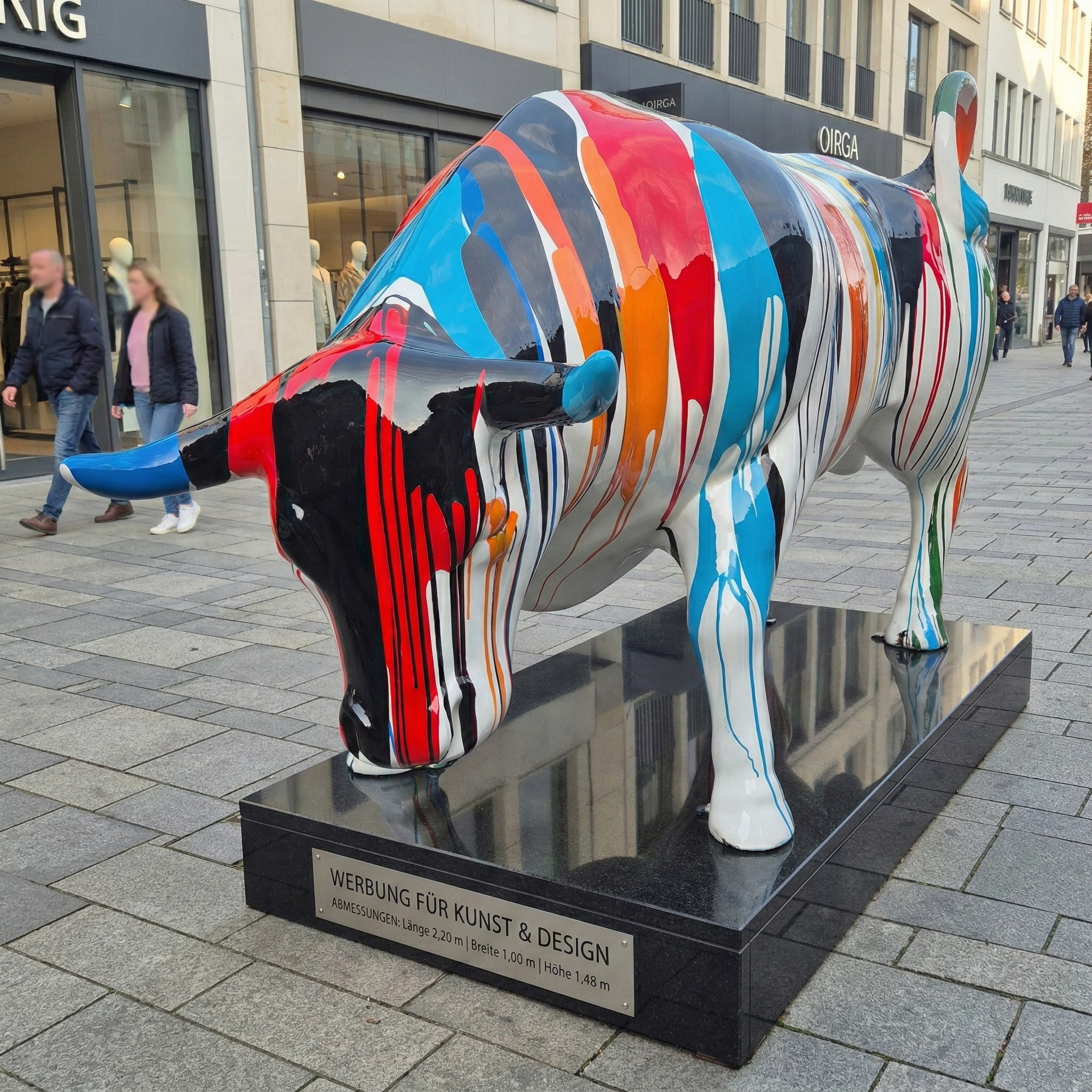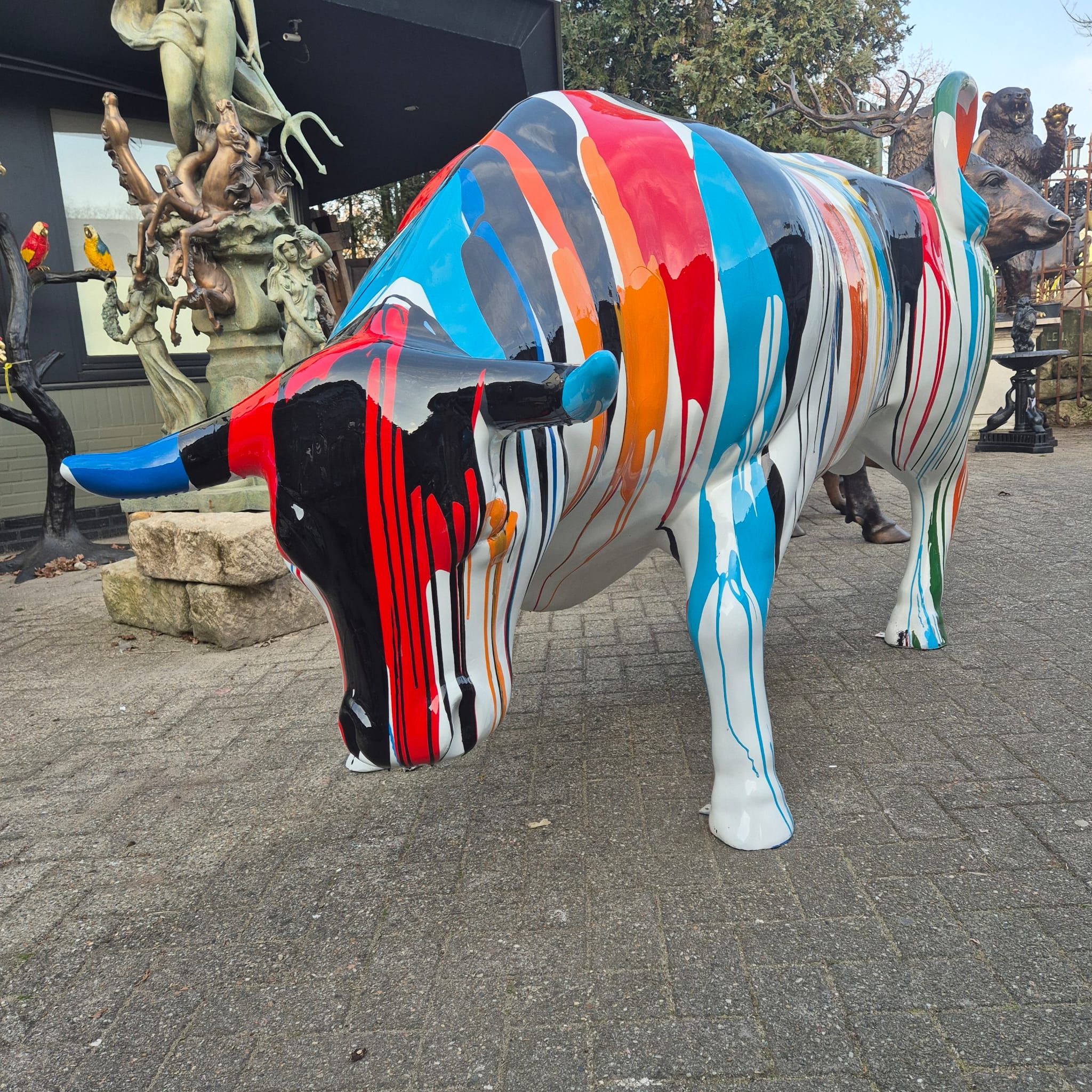 Zum Verkauf steht eine beeindruckende Stier-Skulptur im Stil des berühmten Wall Street Bullen. Gefertigt aus hochwertigem Polyester und aufwendig mit mehrfarbigem Lack veredelt, ist dieses Kunstwerk ein echter Blickfang für Innen- und Außenbereiche. Ein exklusives Statement-Piece mit kraftvoller Ausstrahlung!