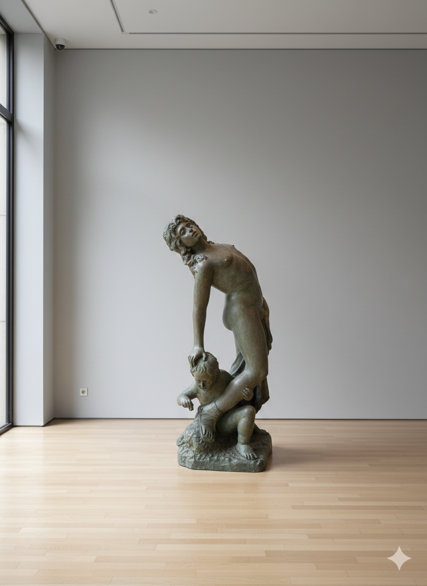 Skulptur Figur Frau mit Kind Bronze 1,08 m