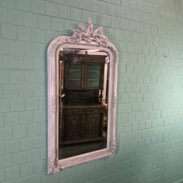 Materialien und Design: Der Spiegel besitzt einen stabilen Rahmen aus Massivholz, der kunstvoll im Barockstil gearbeitet ist. Die detailreichen Schnitzereien und Verzierungen an der Krone des Spiegels, die florale Motive und geschwungene Linien zeigen, verleihen ihm eine luxuriöse und anspruchsvolle Ausstrahlung. Die helle, cremeweiße Oberfläche mit einer leichten Patina-Optik unterstreicht den antiken Charakter und lässt ihn besonders edel wirken, während er sich nahtlos in vielfältige Einrichtungsstile einfügt – von klassisch-barock bis hin zu modern-chic als Akzentstück.