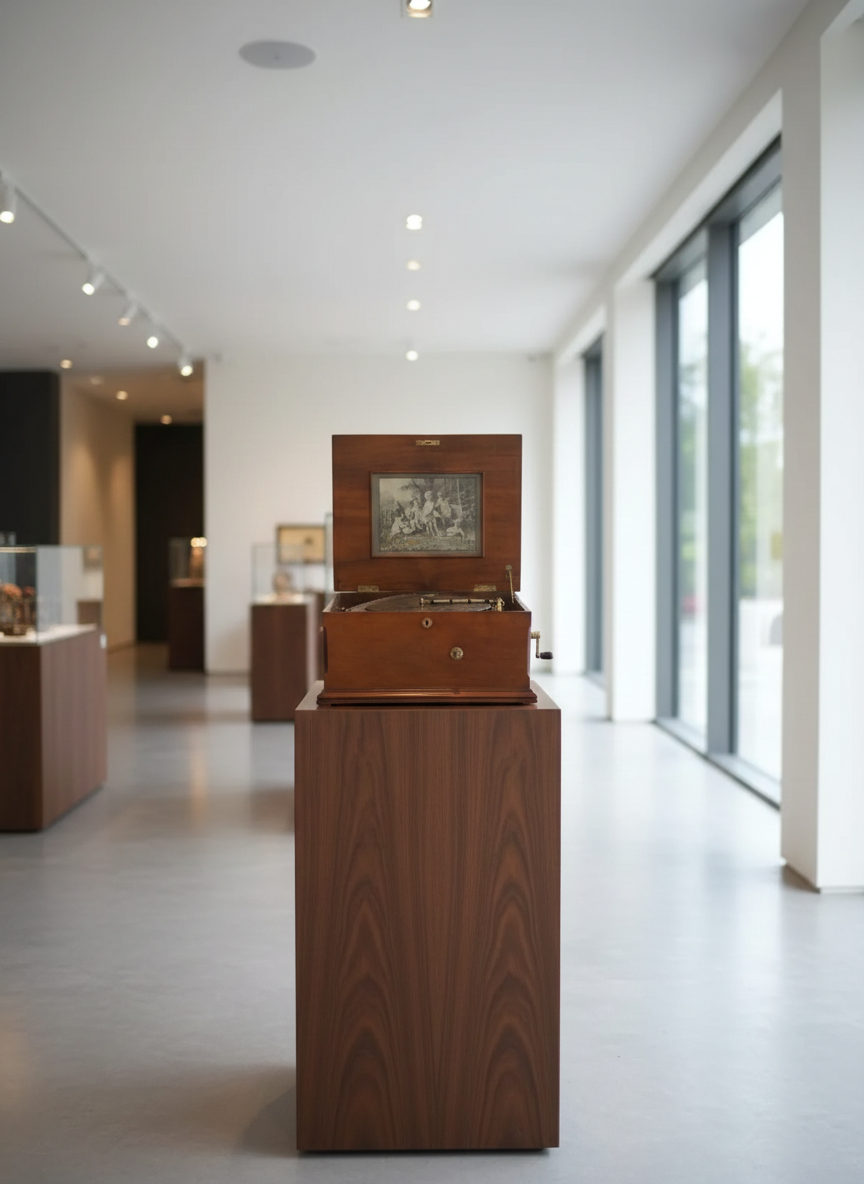 3.024,37€ Exkl. MwSt.Im Originalzustand stehende Gründerzeit Spieluhr in Nussbaum mit Intarsien furniert von ca. 1880. Die funktionstüchtige Spieluhr befindet sich in einem guten Zustand und weist nur normale Gebrauchsspuren auf. Der Kasten ist frei von Wurmbefall und befindet sich ebenfalls in einem guten Zustand. Inklusive 52 Platten (Plattendurchmesser 38 cm).