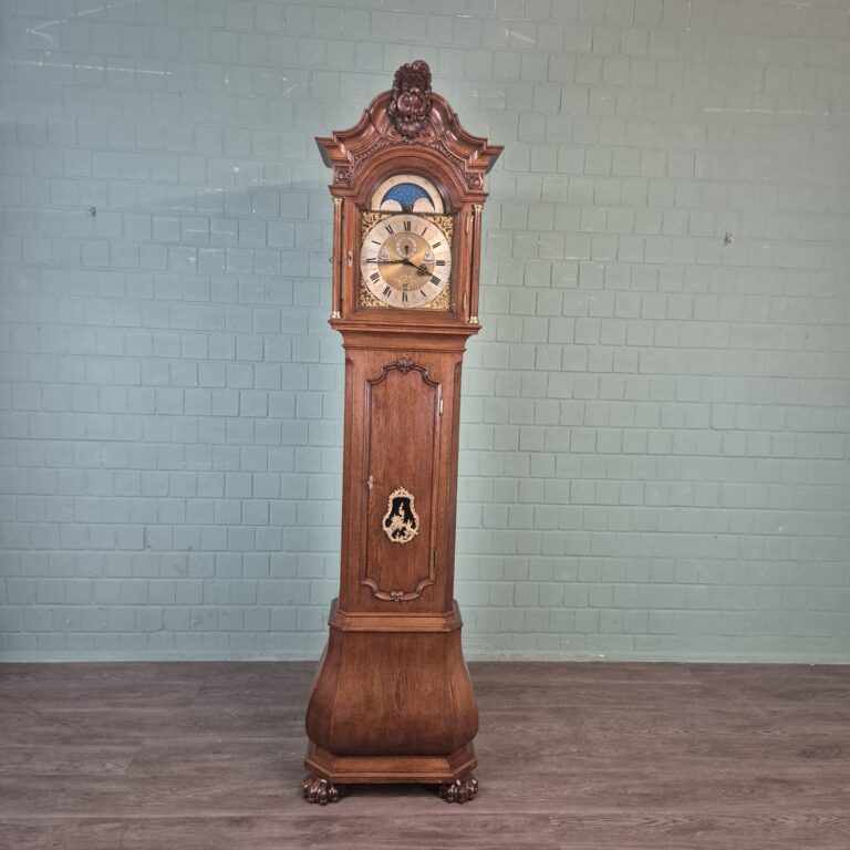 3.299,00€ Exkl. MwSt.Im Originalzustand stehende LFS (Uhrenfabrik Lorenz Furtwängler & Söhne im Schwarzwald) Standuhr in Nussbaum furniert mit Westminster Viertelschlag. Die ca. 1890 für die Niederlande gefertigte Uhr befindet sich in einem sehr guten Zustand und weist nur minimale Gebrauchsspuren auf. Sie ist versehen mit 5 Klangstäben, Sekundenzähler, Kalender und Mondkalender.