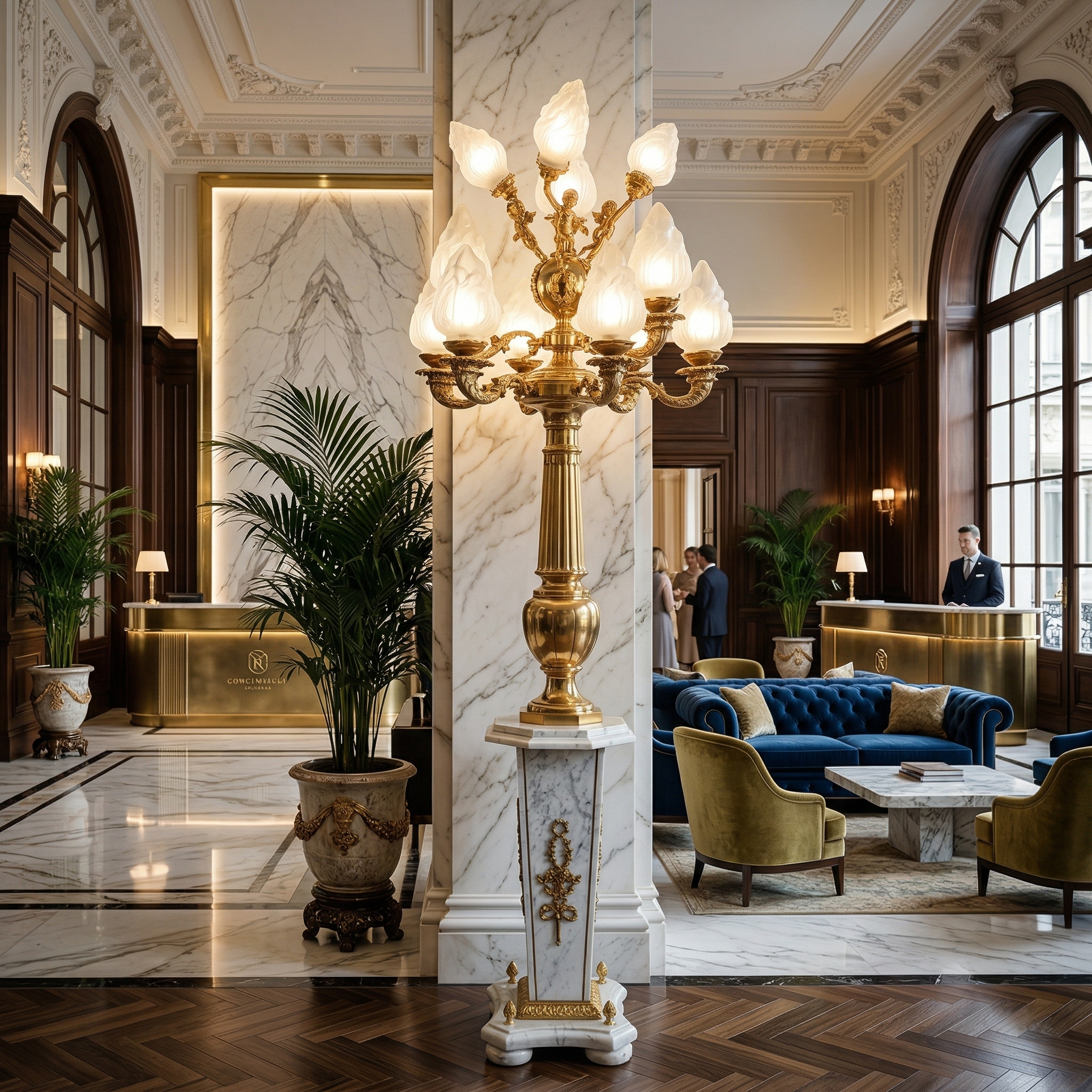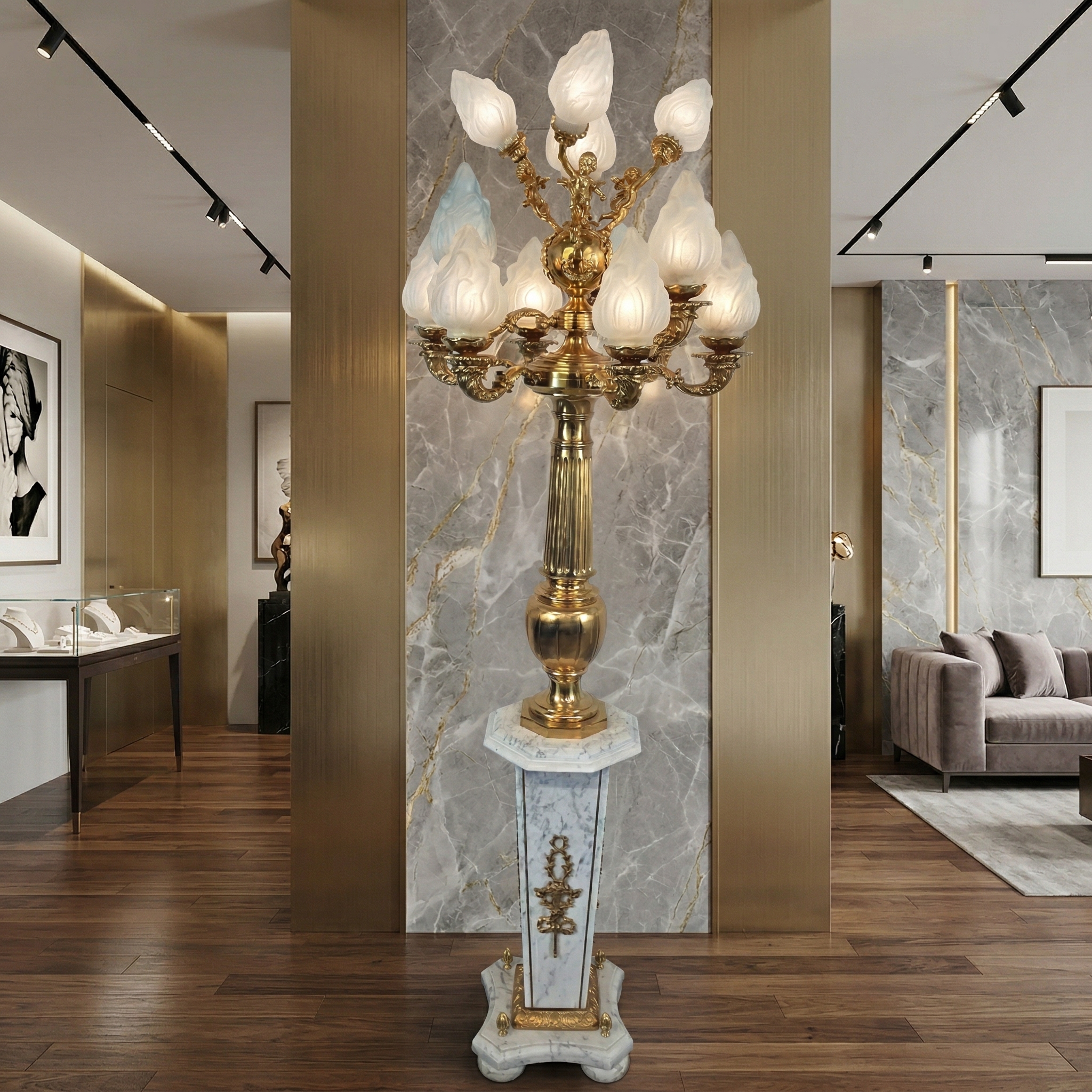 Stehlampe Laterne Messing Marmor 2,10 m