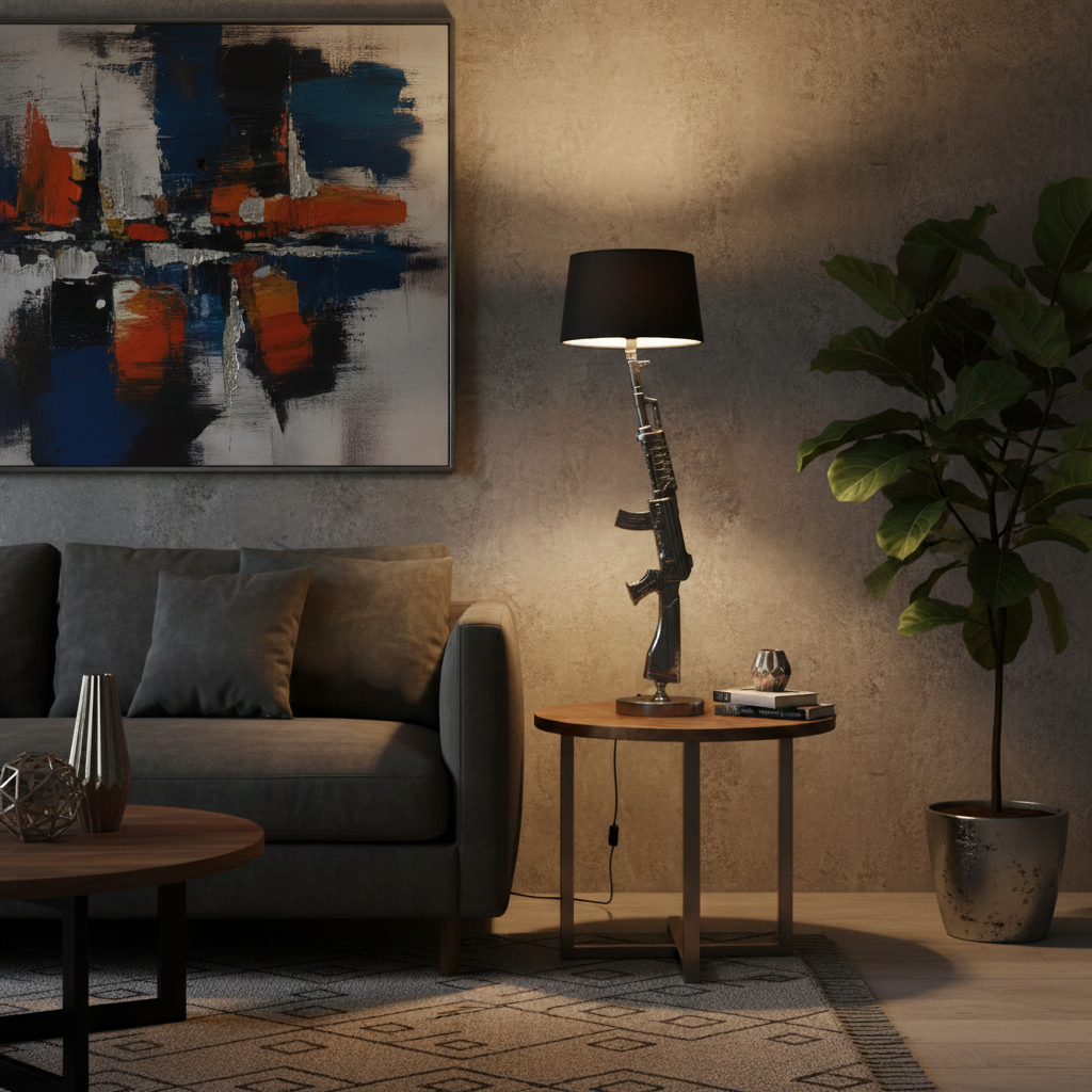 Stehlampe Tischlampe AK-47 Gewehr Lampe Chrom