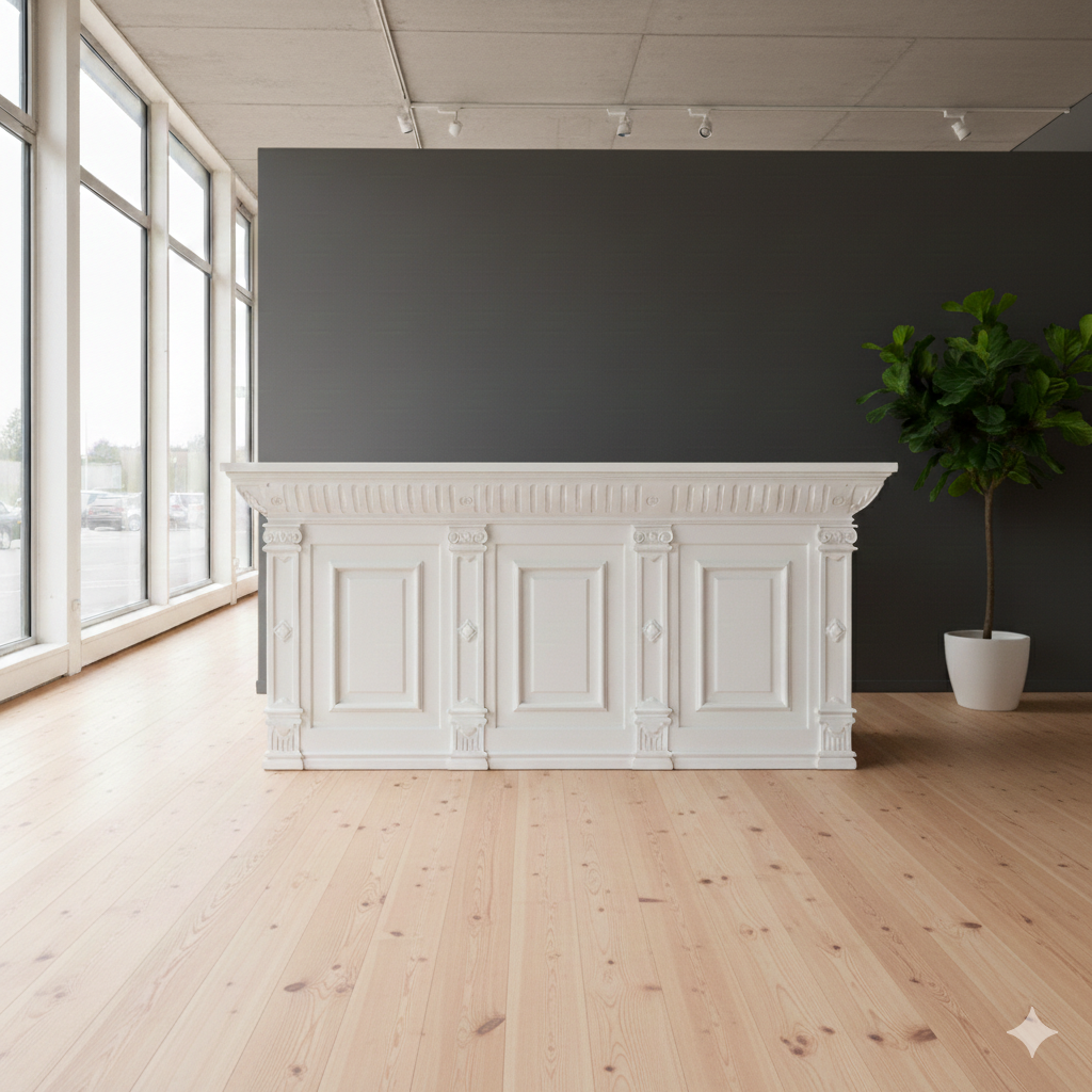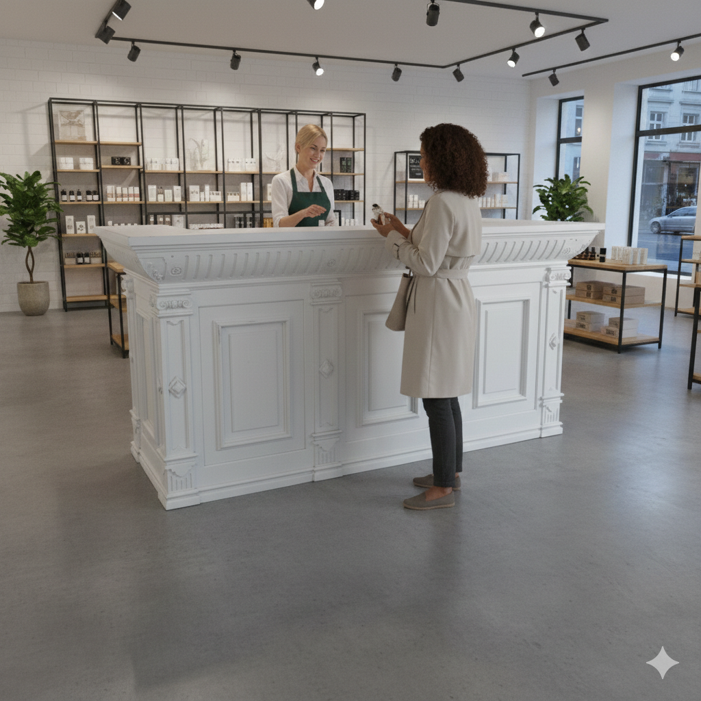 Der Tresen Modell Bella aus Massivholz besticht durch seine stilvolle Eleganz und der aufwendigen Verarbeitung. Die Kombination von nostalgischer Optik und moderner Funktionalität ist für alle Ladeneinrichtungen sowie vielen weiteren Einsatzgebieten geeignet. Der Tresen wird komplett fertig montiert geliefert und ist somit sofort einsatzbereit.