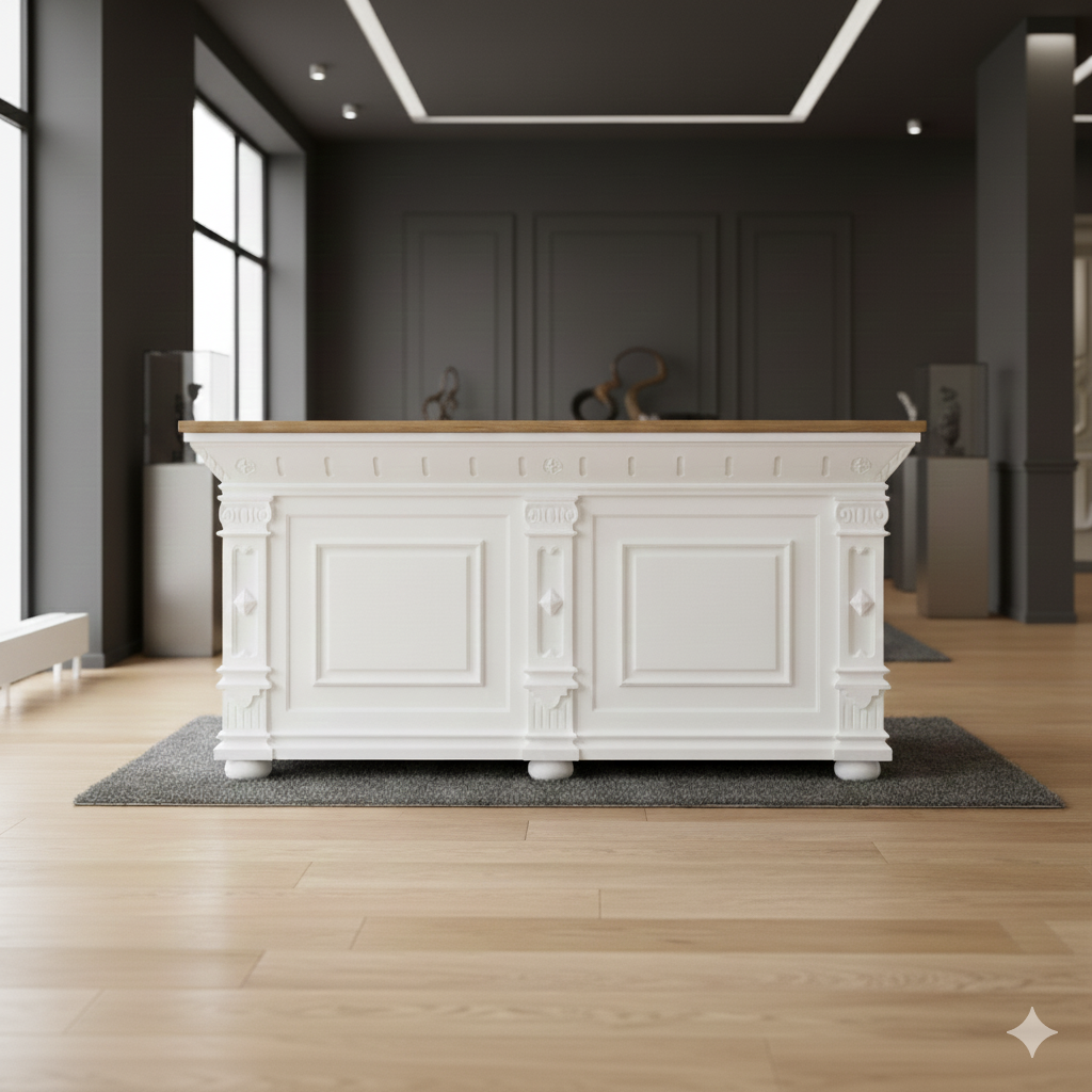 Der Tresen Modell Bella aus Massivholz besticht durch seine stilvolle Eleganz und der aufwendigen Verarbeitung. Die Kombination von nostalgischer Optik und moderner Funktionalität ist für alle Ladeneinrichtungen sowie vielen weiteren Einsatzgebieten geeignet. Der Tresen wird komplett fertig montiert geliefert und ist somit sofort einsatzbereit.