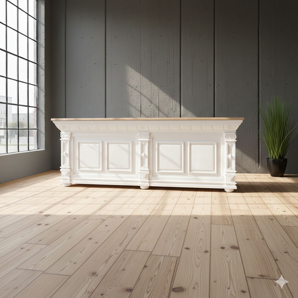 Der Tresen Modell Bella aus Massivholz besticht durch seine stilvolle Eleganz und der aufwendigen Verarbeitung. Die Kombination von nostalgischer Optik und moderner Funktionalität ist für alle Ladeneinrichtungen sowie vielen weiteren Einsatzgebieten geeignet. Der Tresen wird komplett fertig montiert geliefert und ist somit sofort einsatzbereit.