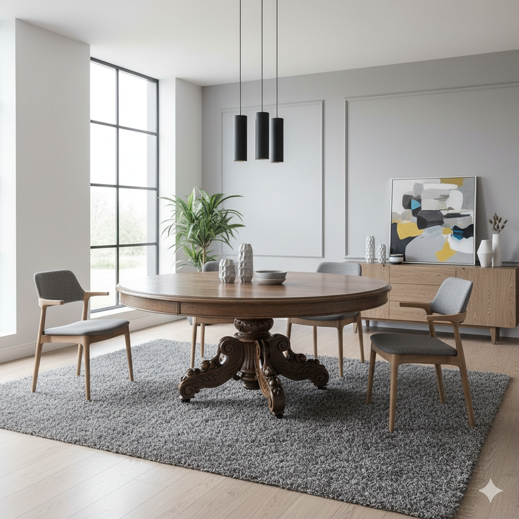 Tisch Esstisch Neubarock 1890 Eiche Oval 1,55 m x 1,25 m