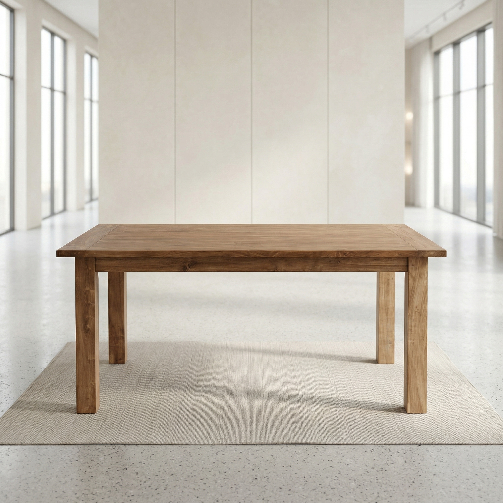 Dieser zeitlos gestaltete Tisch aus massiv Teakholz (recyceltes, unbehandeltes Holz) erhält seine besondere Wirkung durch natürliche Unregelmäßigkeiten im Holz. Diese entstehen durch das verwendete Edelholz mit seinen verschiedenen Farben und Strukturen, welche diesem Stück einen eigentümlichen Charakter verleihen und es zu einem Unikat machen. Maserung und Farbton des Holzes tragen sehr zum optischen Wert dieses Möbels bei, das sich in seiner schlichten Eleganz vielen Modetrends anpasst. Zerlegbar (5-teilig).