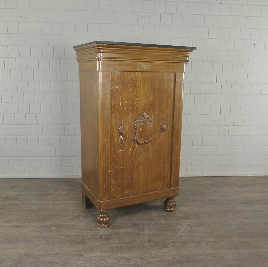 2.730,25€ Exkl. MwSt.Stilvoller Gründerzeit Tresor aus Metall in Holzoptik von ca. 1880. Der mit Granitplatte versehene Panzerschrank von J. B. Rocher befindet sich in einem sehr guten Zustand und weist nur minimale Gebrauchsspuren auf.
