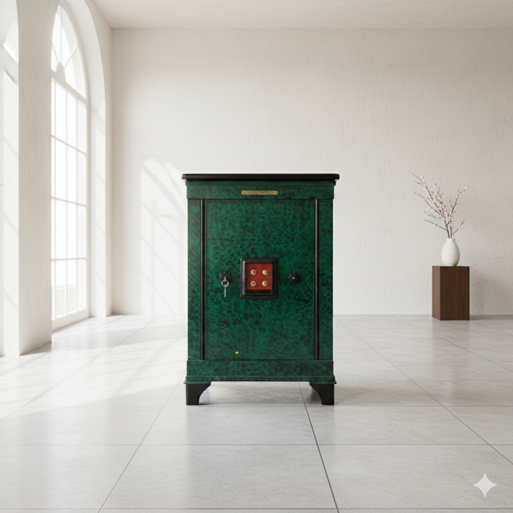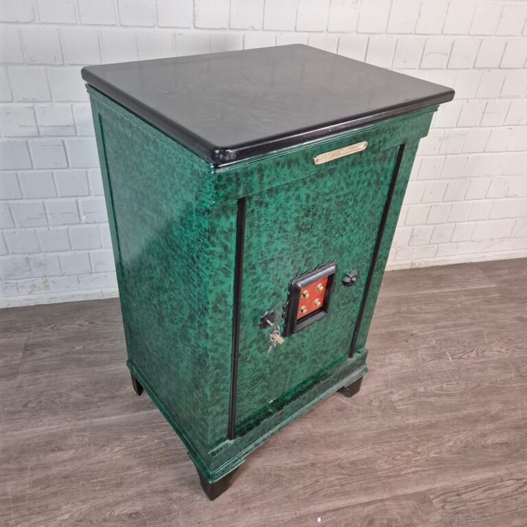 1.889,92€ Exkl. MwSt.Restaurierter Gründerzeit Tresor von ca. 1880. Der farblich aufwendig gestaltete Panzerschrank befindet sich in einem sehr guten Zustand und weist nur minimale Gebrauchsspuren auf. Gewicht ca. 250 Kilogramm. Inklusive Schlüssel.