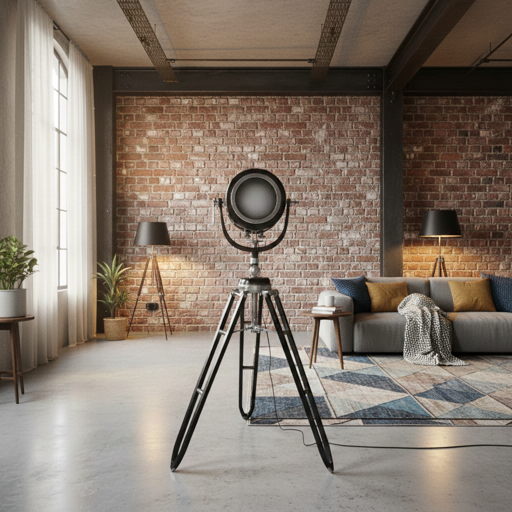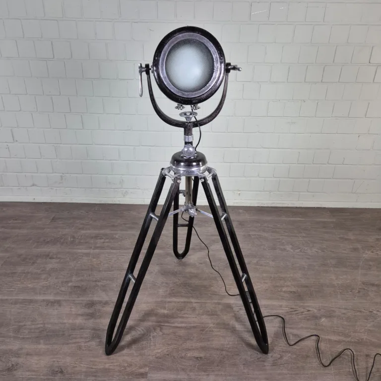 Tripod-Lampe aus Aluminium in nostalgischer Optik. Geeignet für Haus, Gastronomie und Gewerbe.