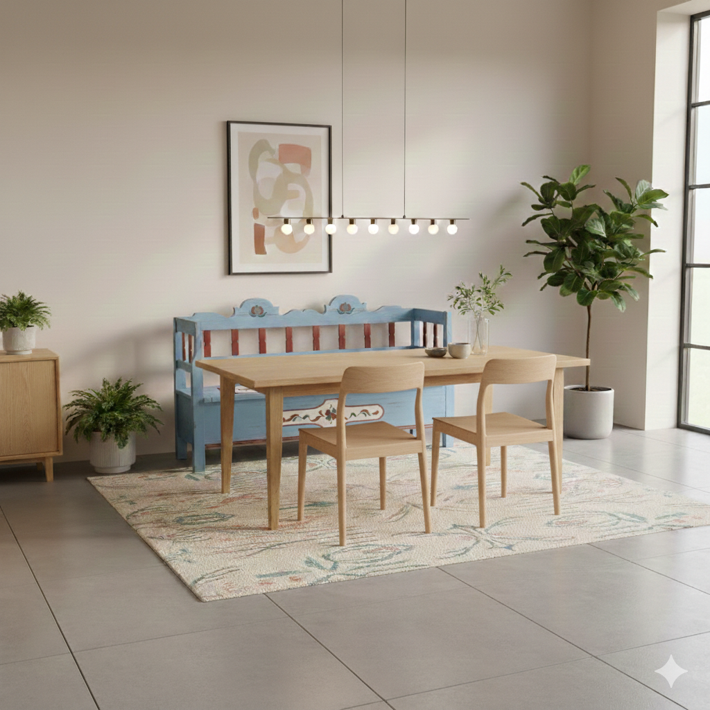 Truhenbank Holzbank Blau 1,98 m Jugendstil 1910 Kiefer