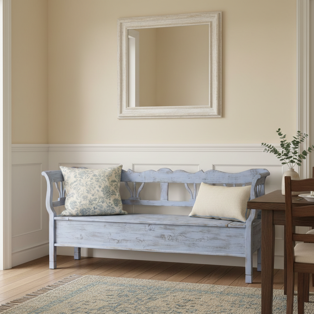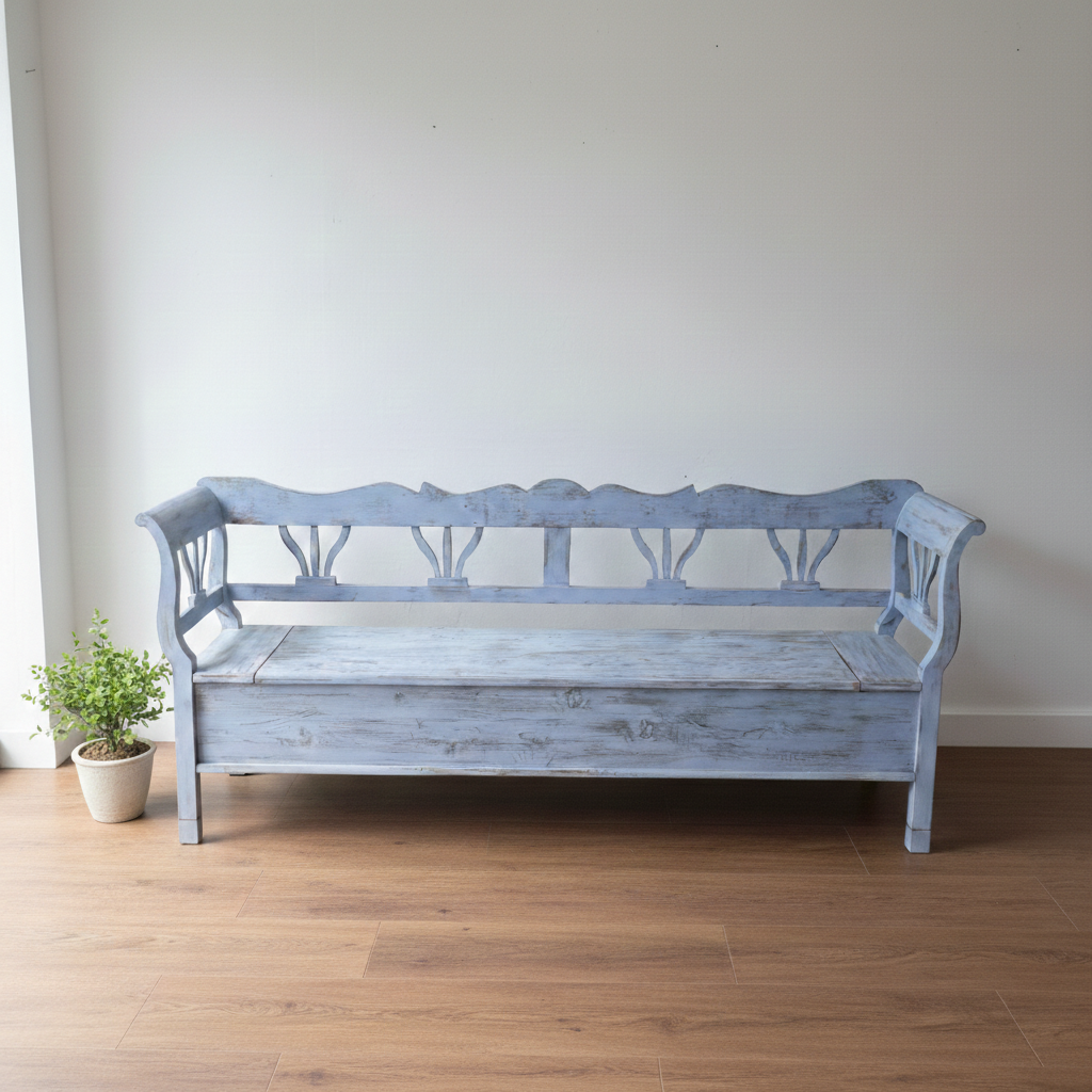 Truhenbank Küchenbank Blau 2,16 m Kiefer