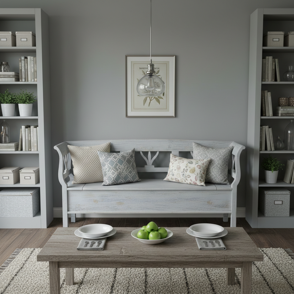 Truhenbank Küchenbank Grau-Blau 1,96 m Kiefer