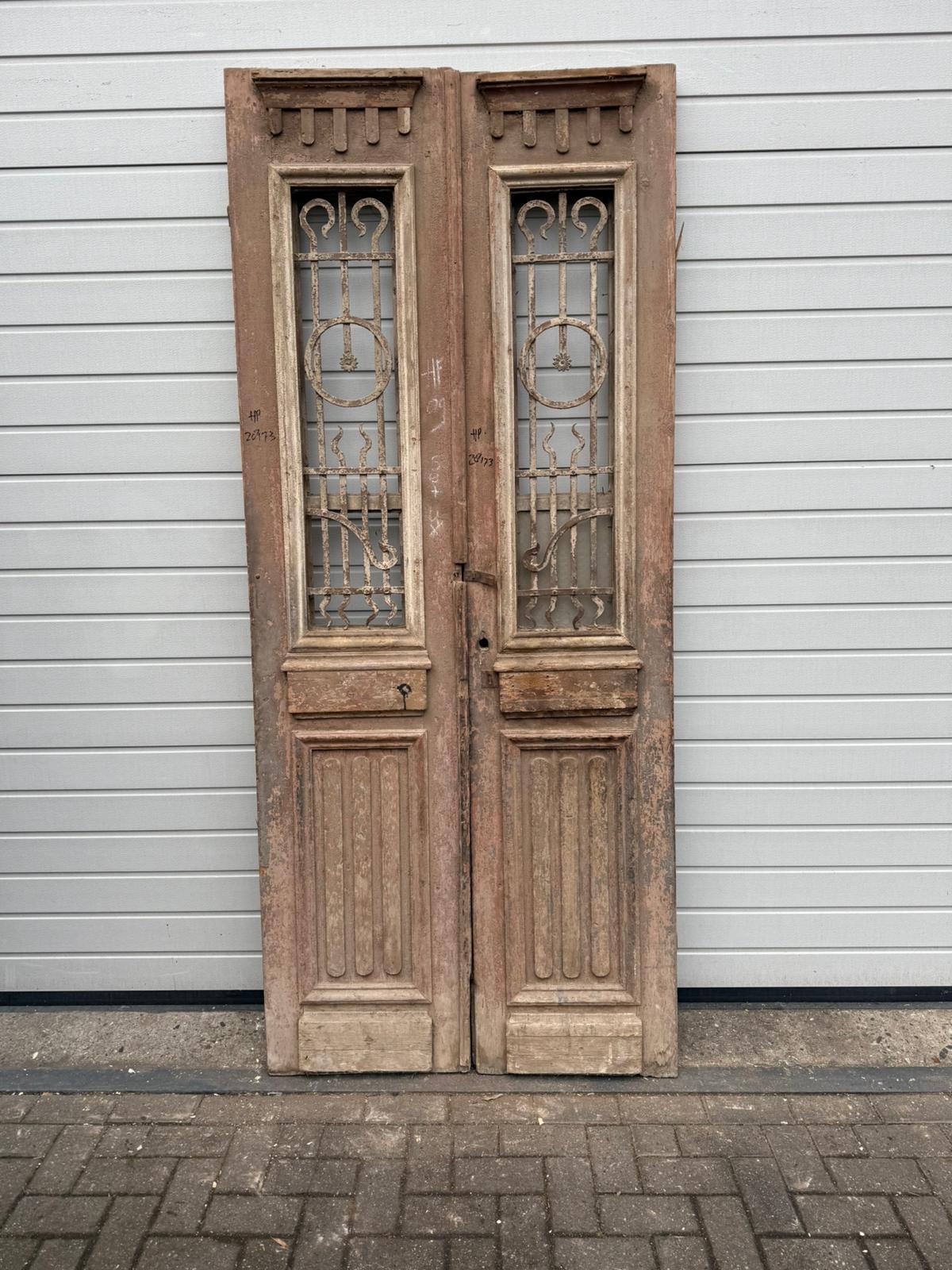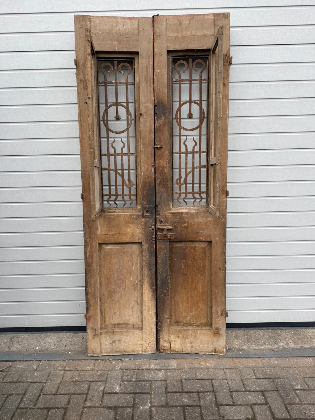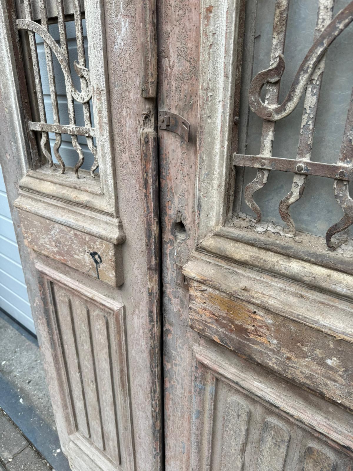 Rarität: Antike Doppelflügeltür um 1880 – Originalzustand mit Gusseisen-Gittern