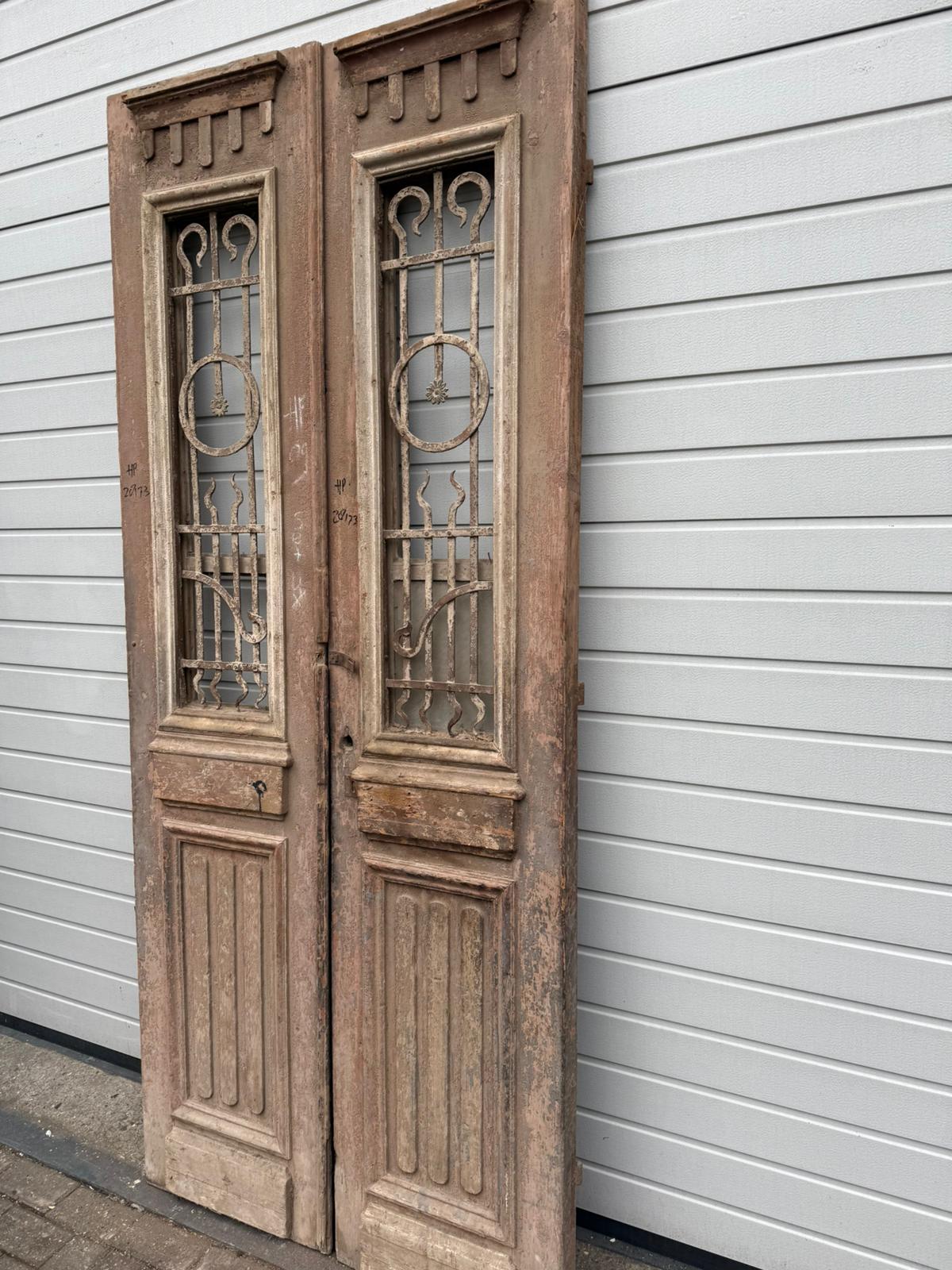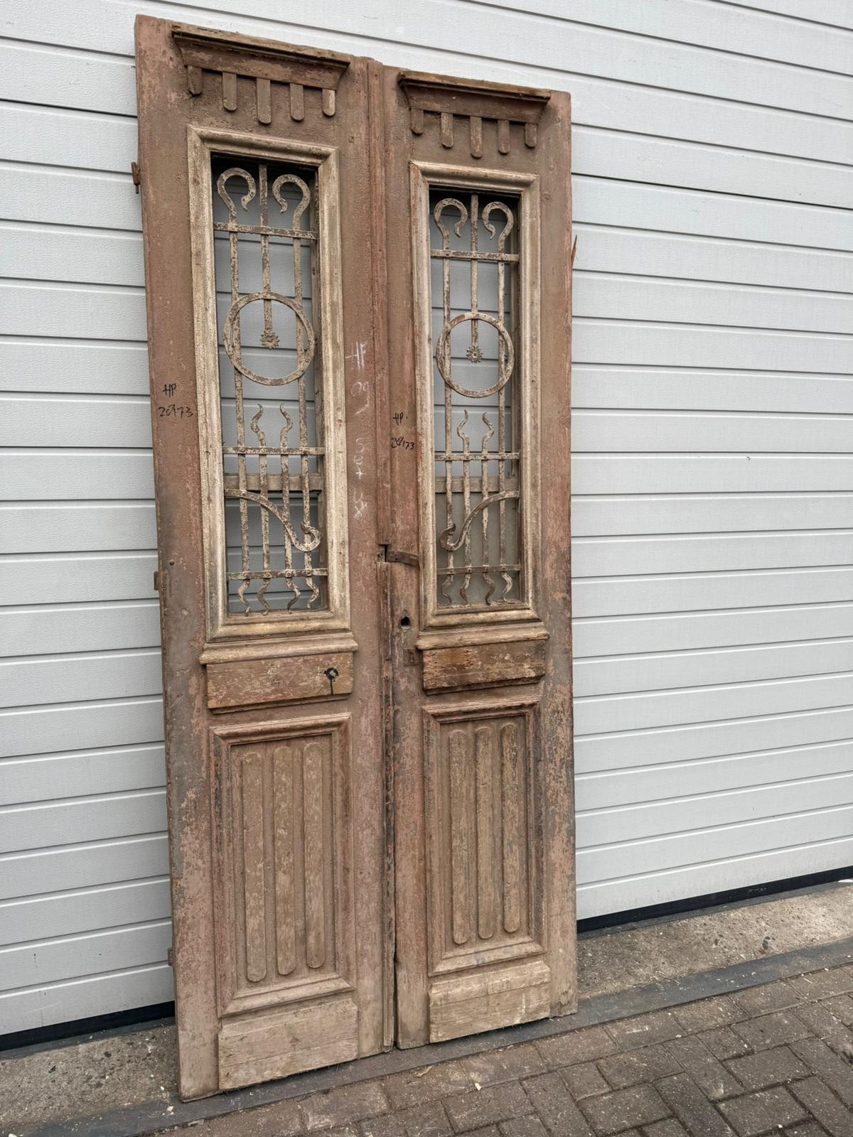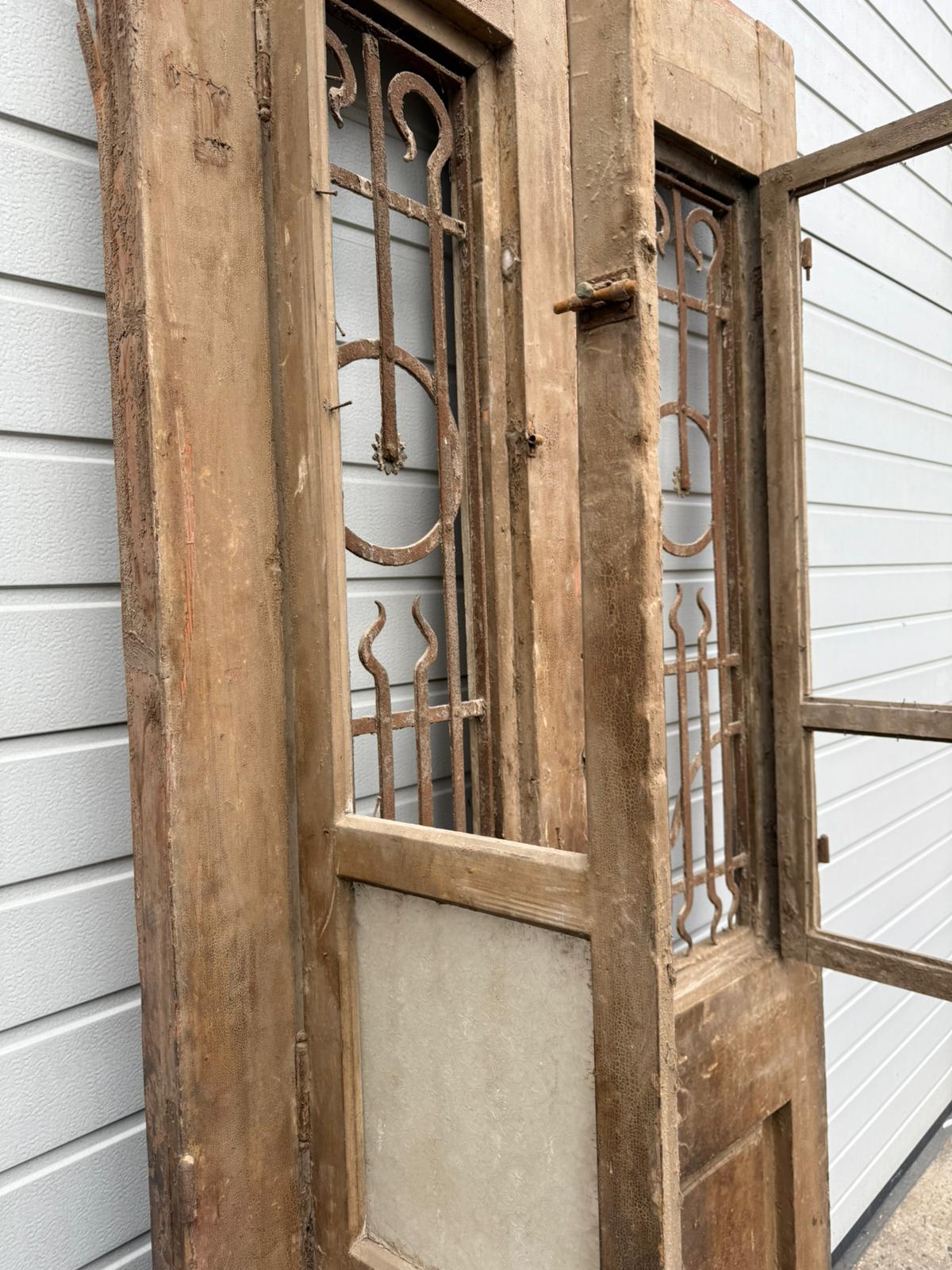Rarität: Antike Doppelflügeltür um 1880 – Originalzustand mit Gusseisen-Gittern