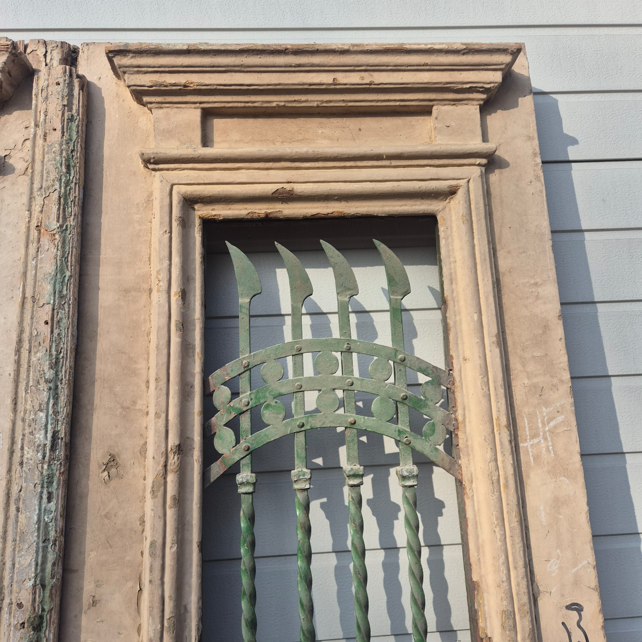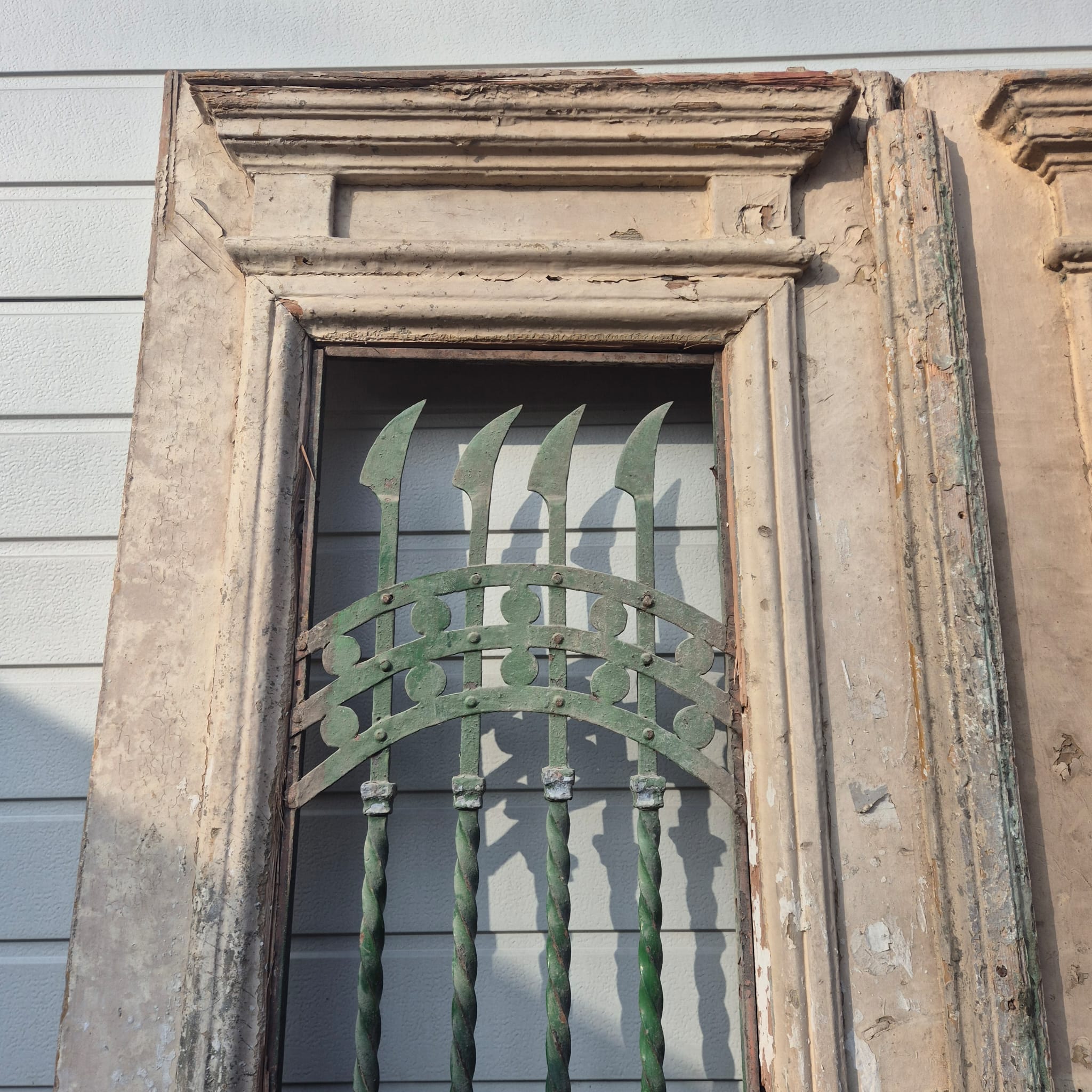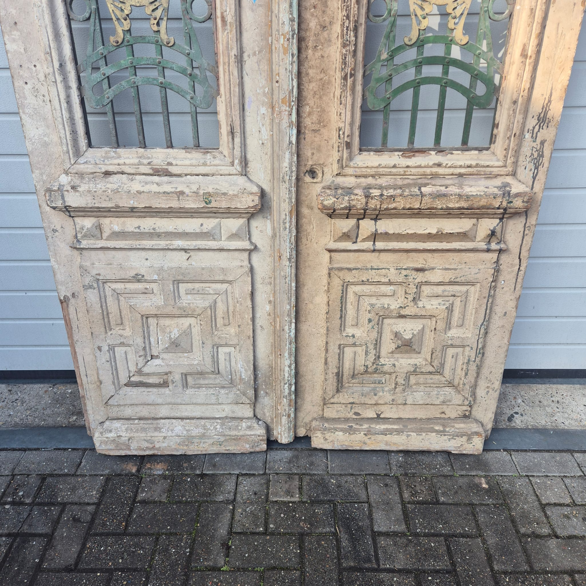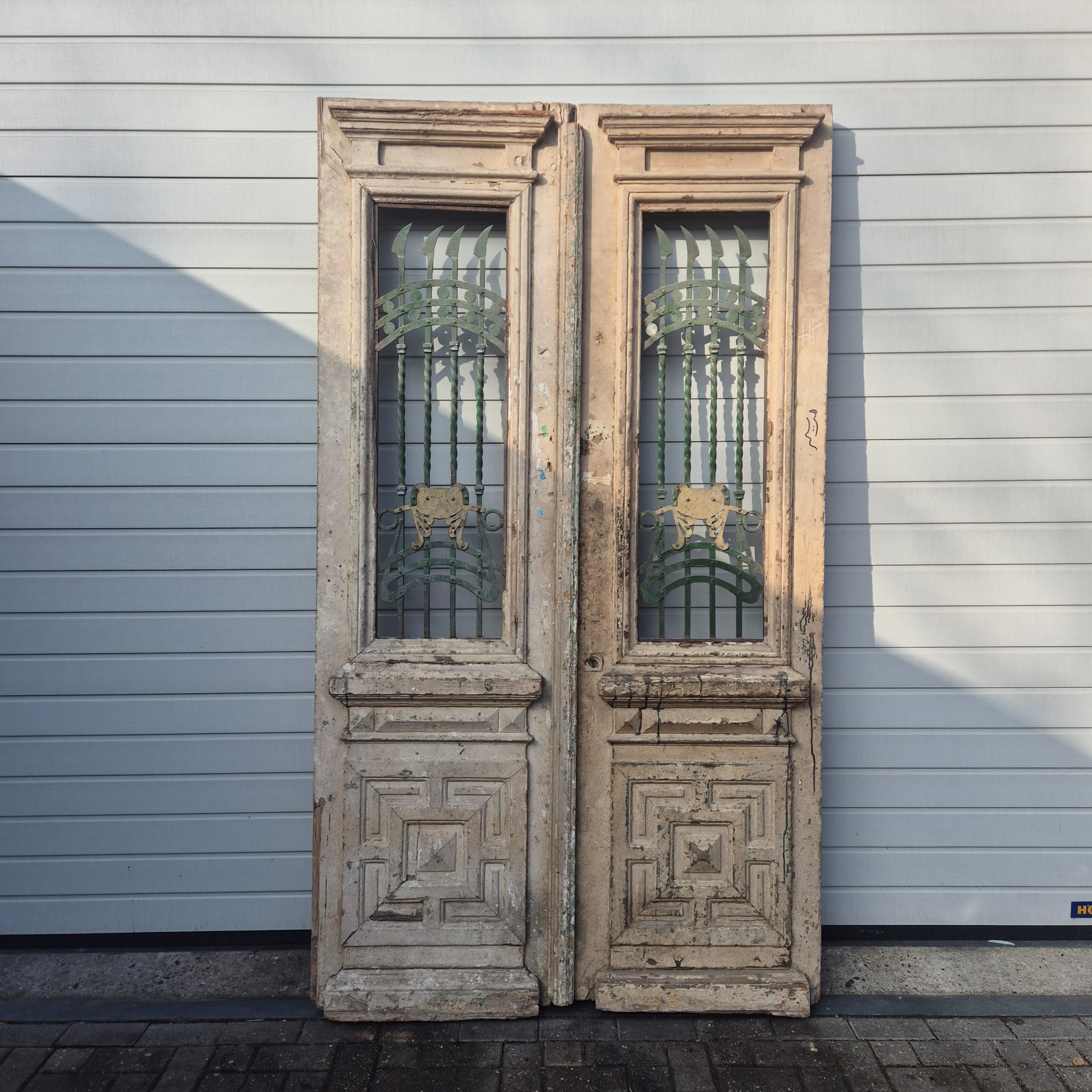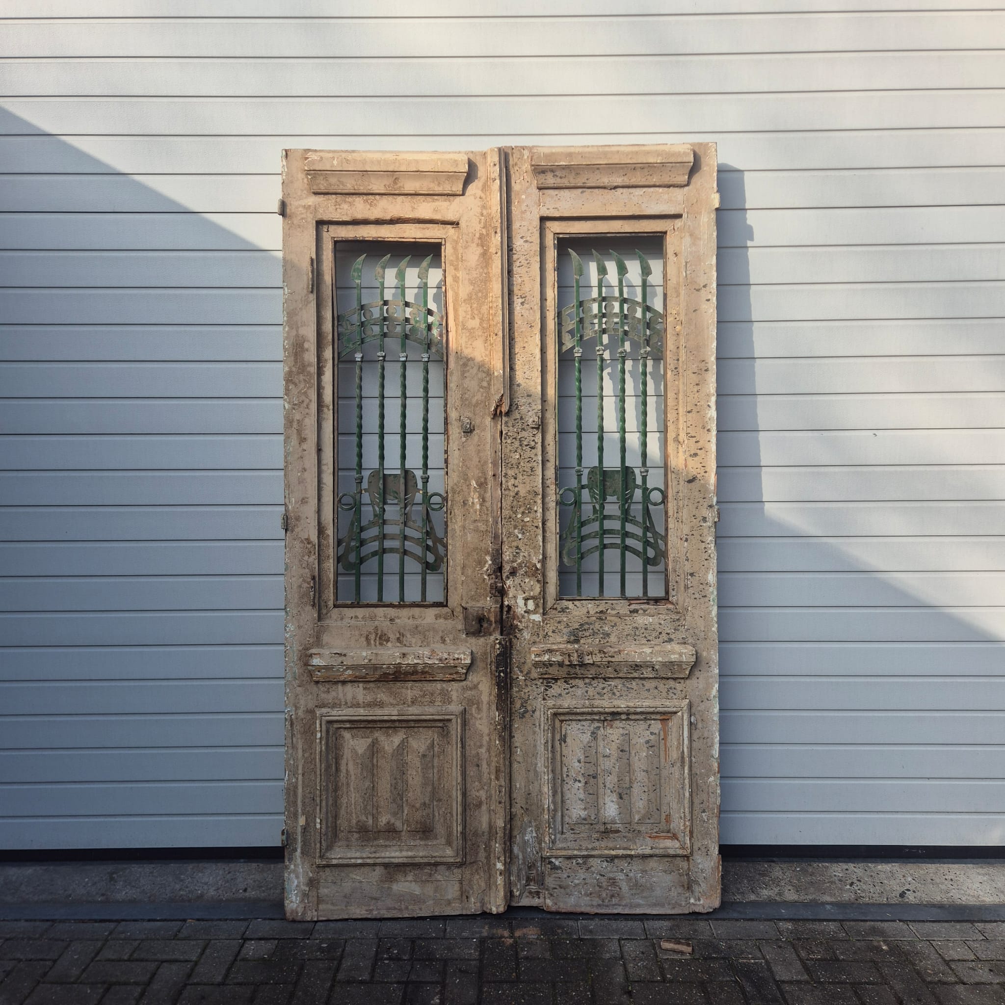 Verleihen Sie Ihrem Zuhause einen unverwechselbaren Charakter mit diesem Originalstück aus der Zeit der Jahrhundertwende. Diese zweiflügelige Hauseingangstür besticht durch ihre authentische Patina und die hochwertige handwerkliche Verarbeitung des Jugendstils. Ob fachgerecht aufgearbeitet oder im charmanten "Shabby-Look" belassen – sie ist ein absoluter Blickfang für Altbauten, Landhäuser oder als besonderes Kontrastelement in moderner Architektur.