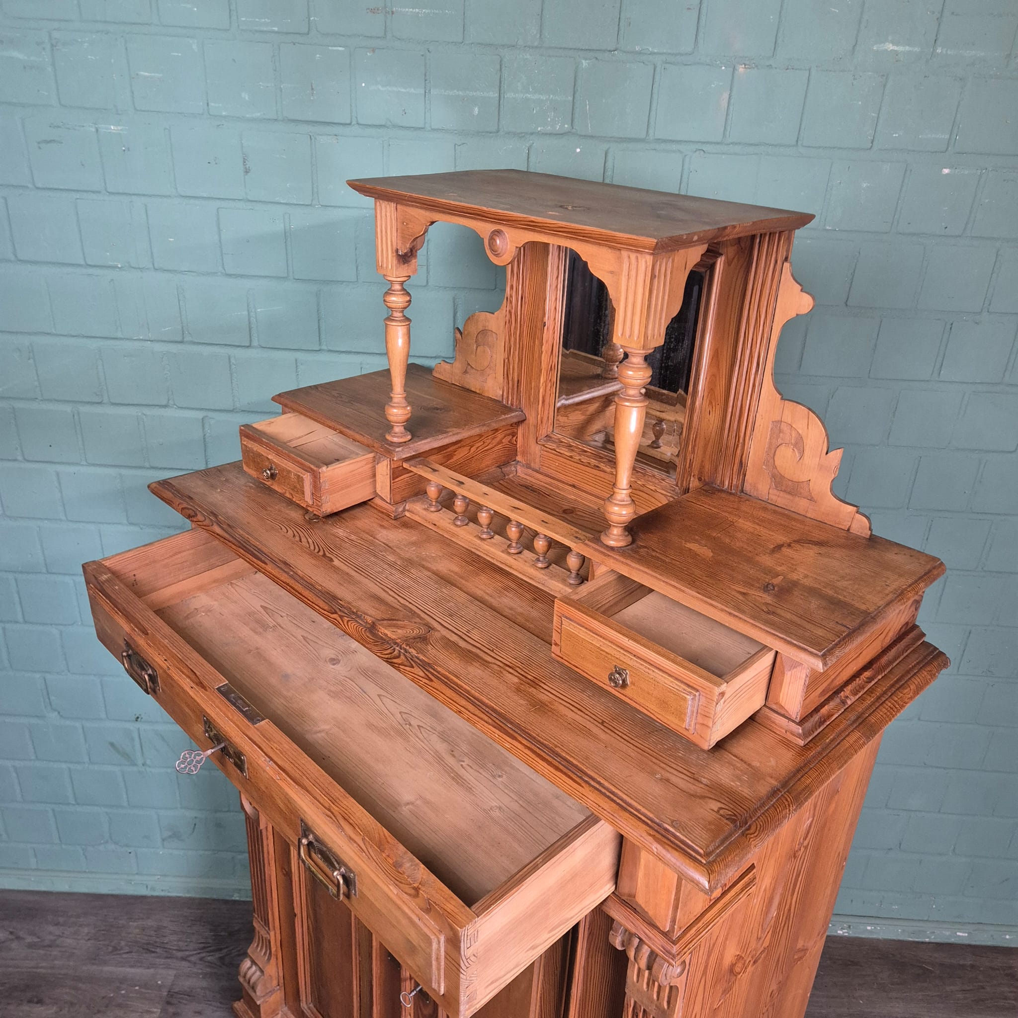 Vertiko mit Aufsatz Gründerzeit 1880 Kiefer