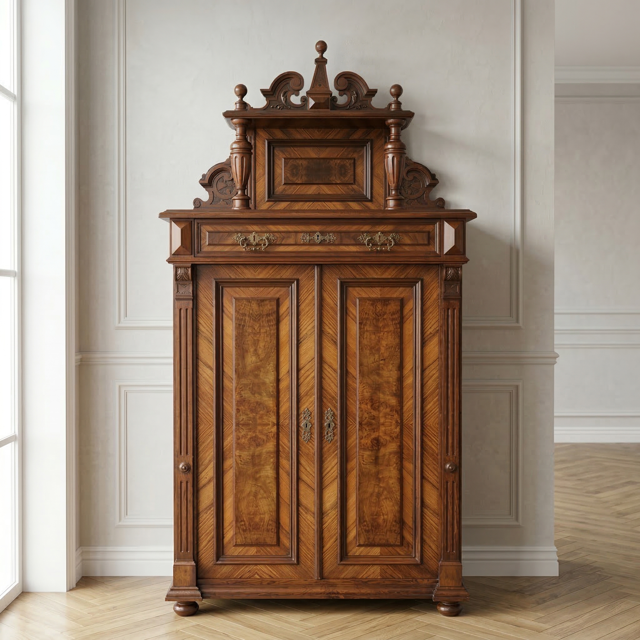 Vertiko mit Aufsatz Gründerzeit 1880 Nussbaum