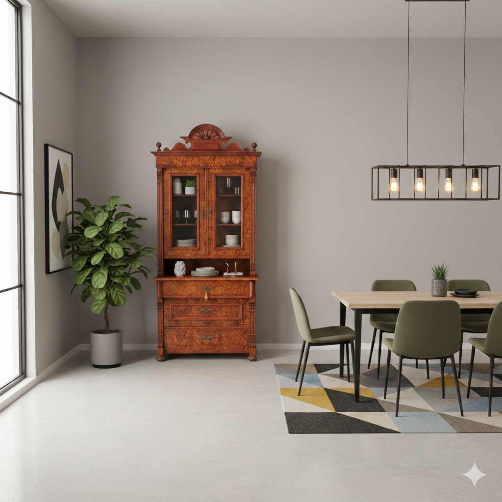 Vitrine Aufsatzschrank Gründerzeit 1880 Birke