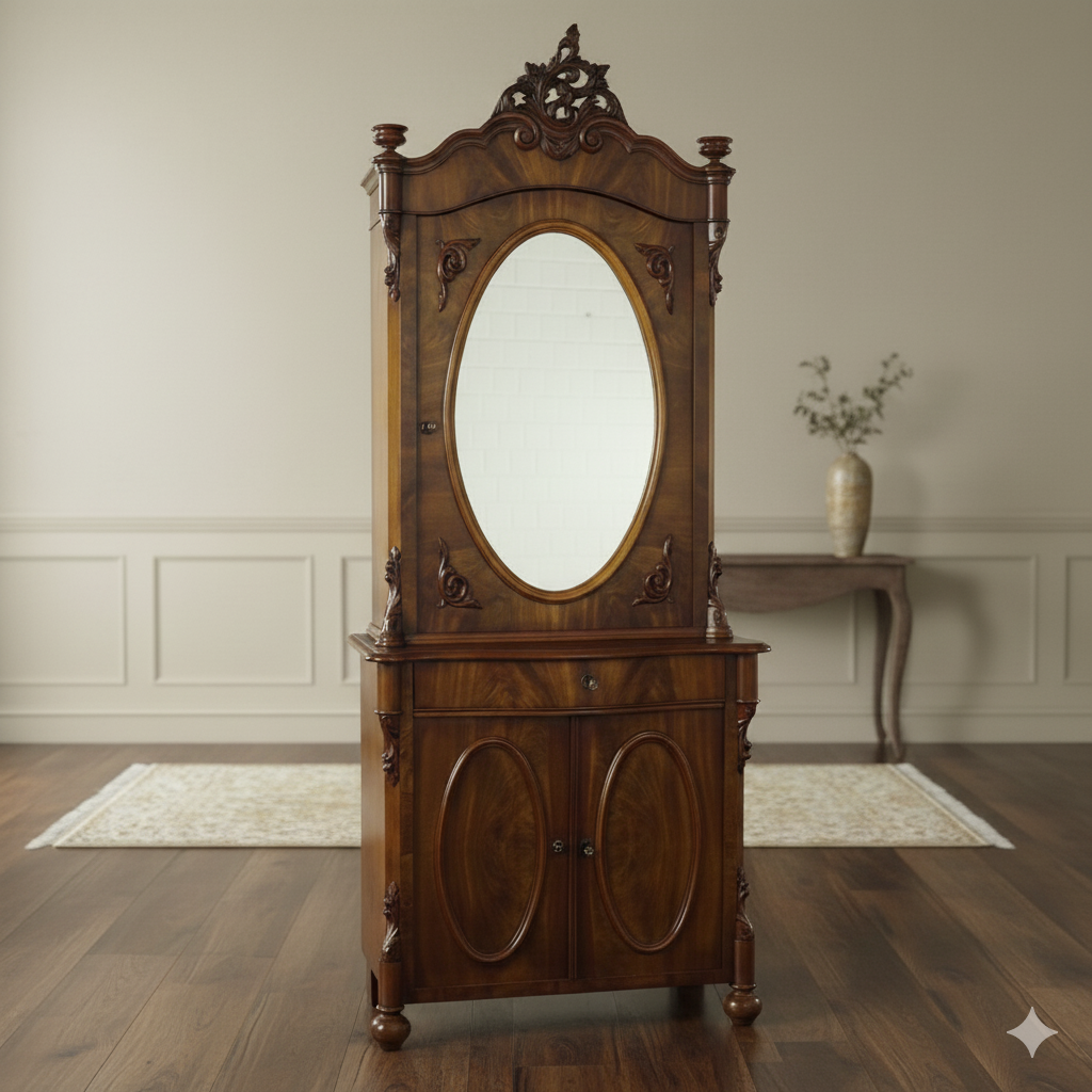 Spiegelschrank Aufsatzschrank Biedermeier 1850 Mahagoni