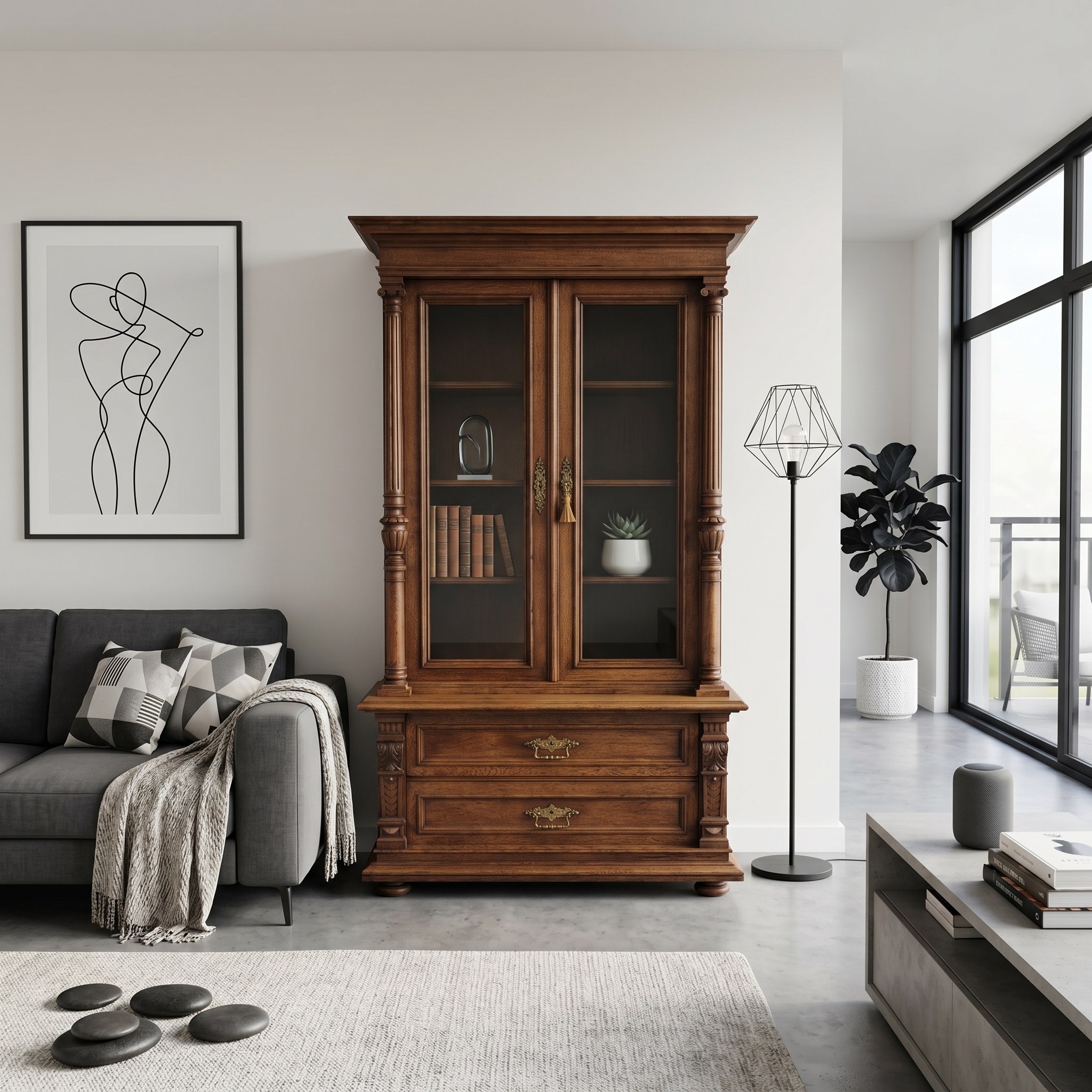 Vitrine Bücherschrank Gründerzeit 1880 Eiche