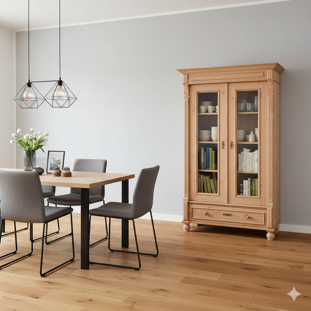 Vitrine Bücherschrank Jugendstil 1900 Kiefer