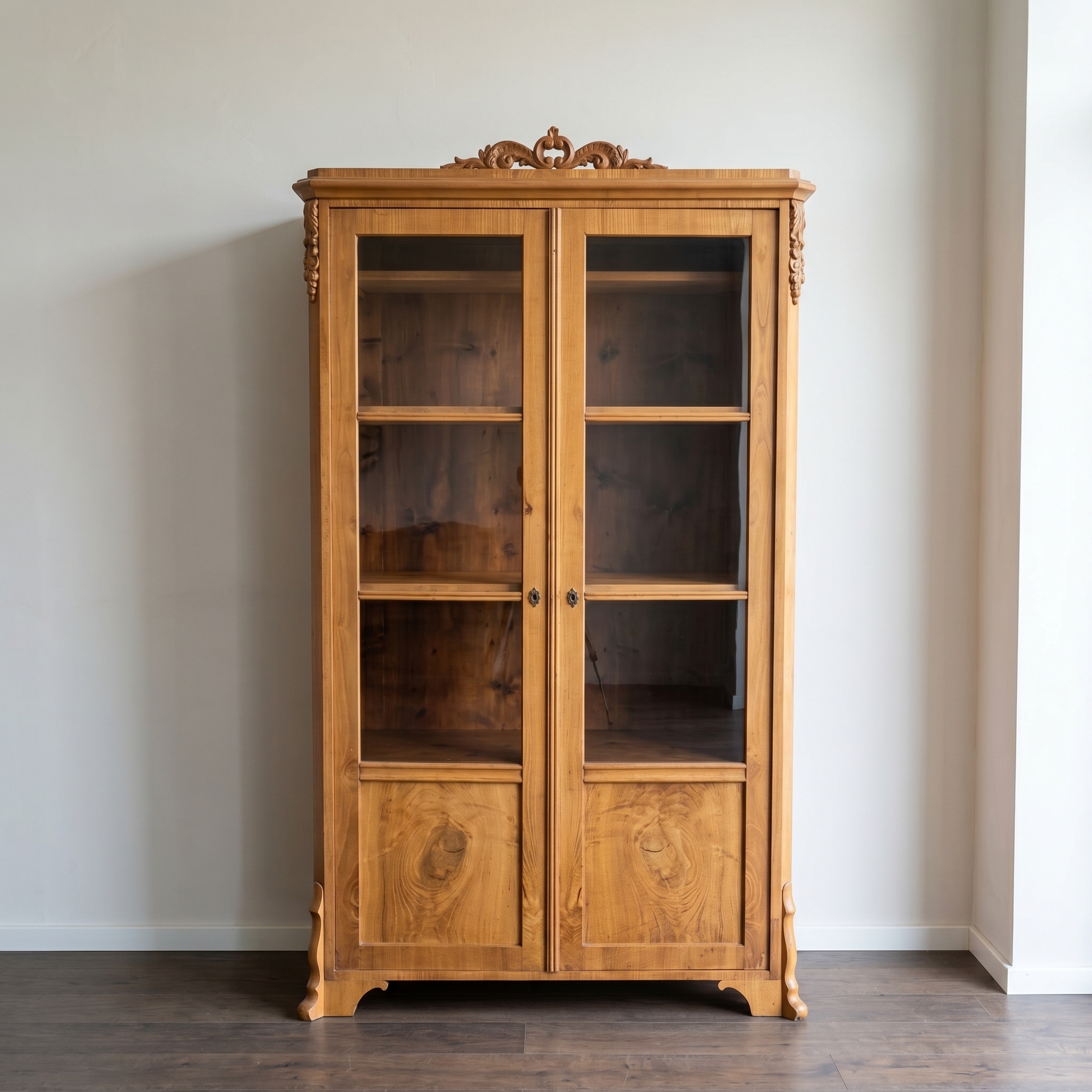 Vitrine Geschirrschrank Biedermeier 1860 Esche