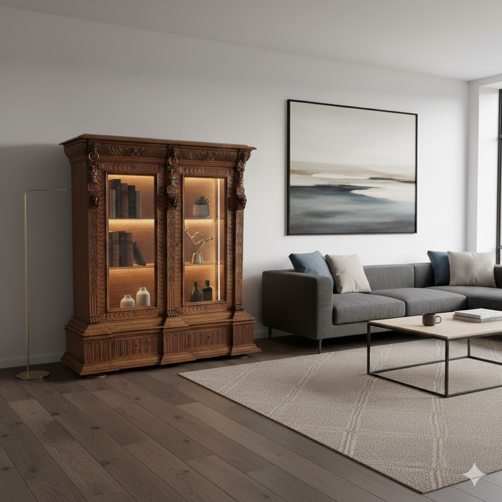Vitrine Geschirrschrank Gründerzeit 1880 Eiche