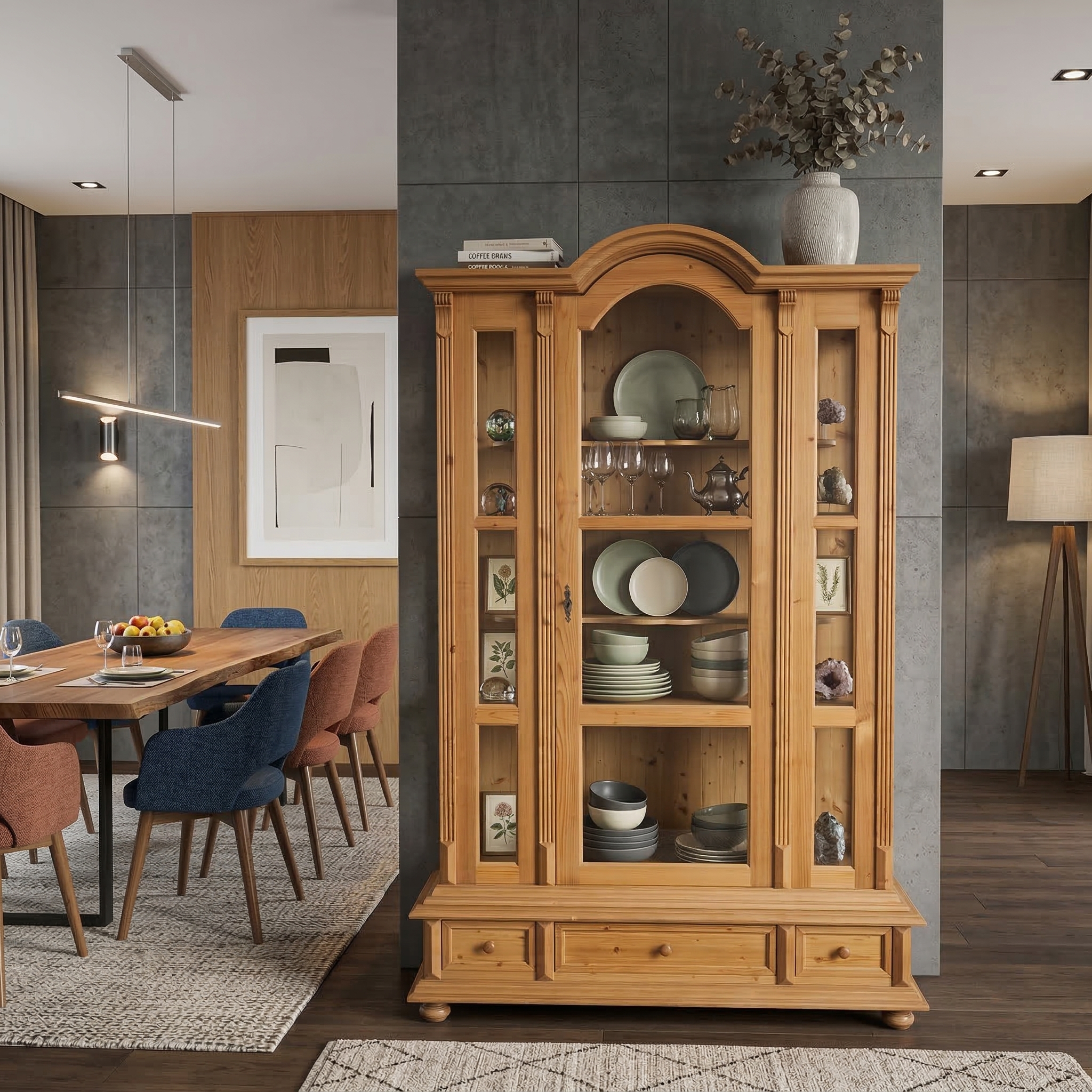 Vitrine Geschirrschrank Kiefer 1,30 m