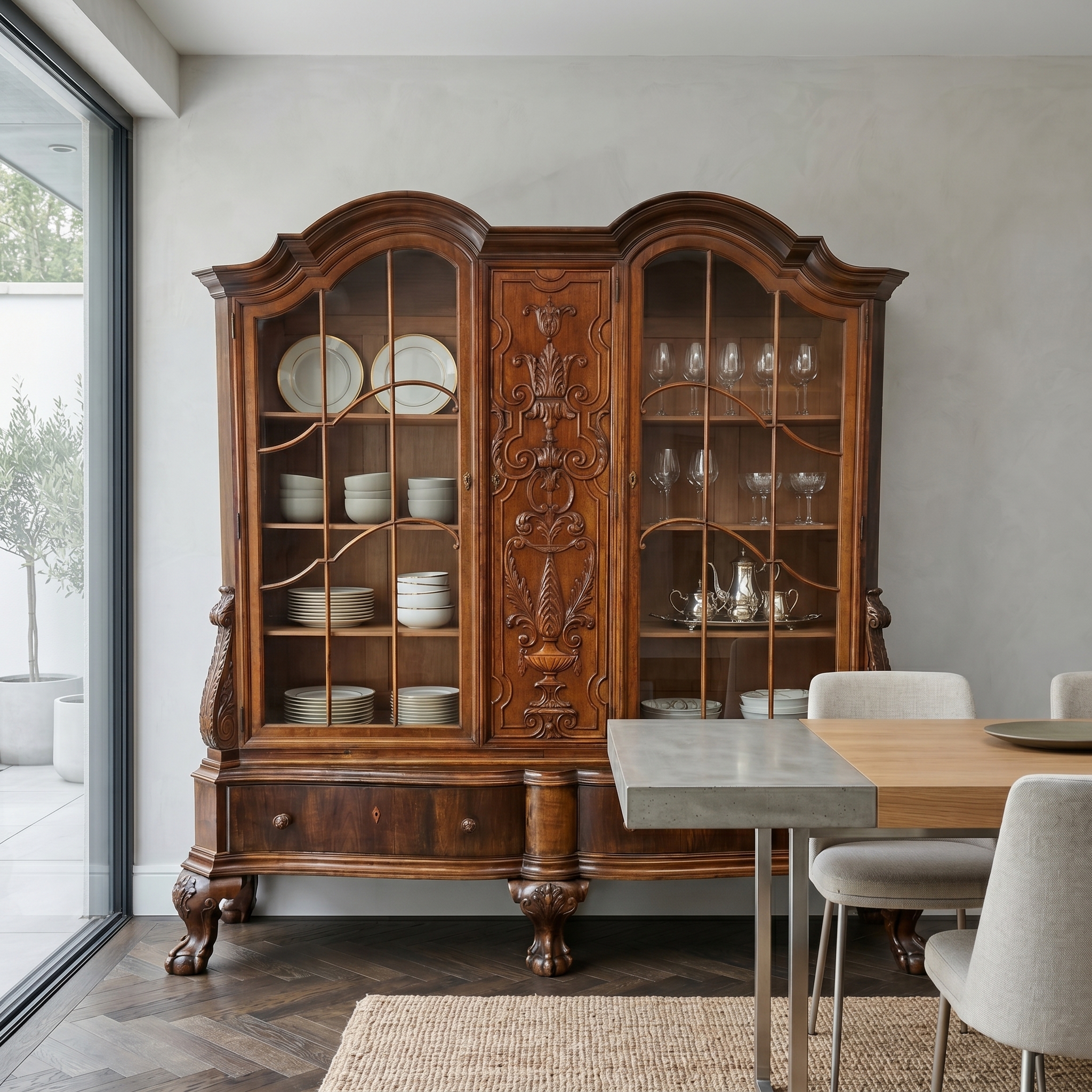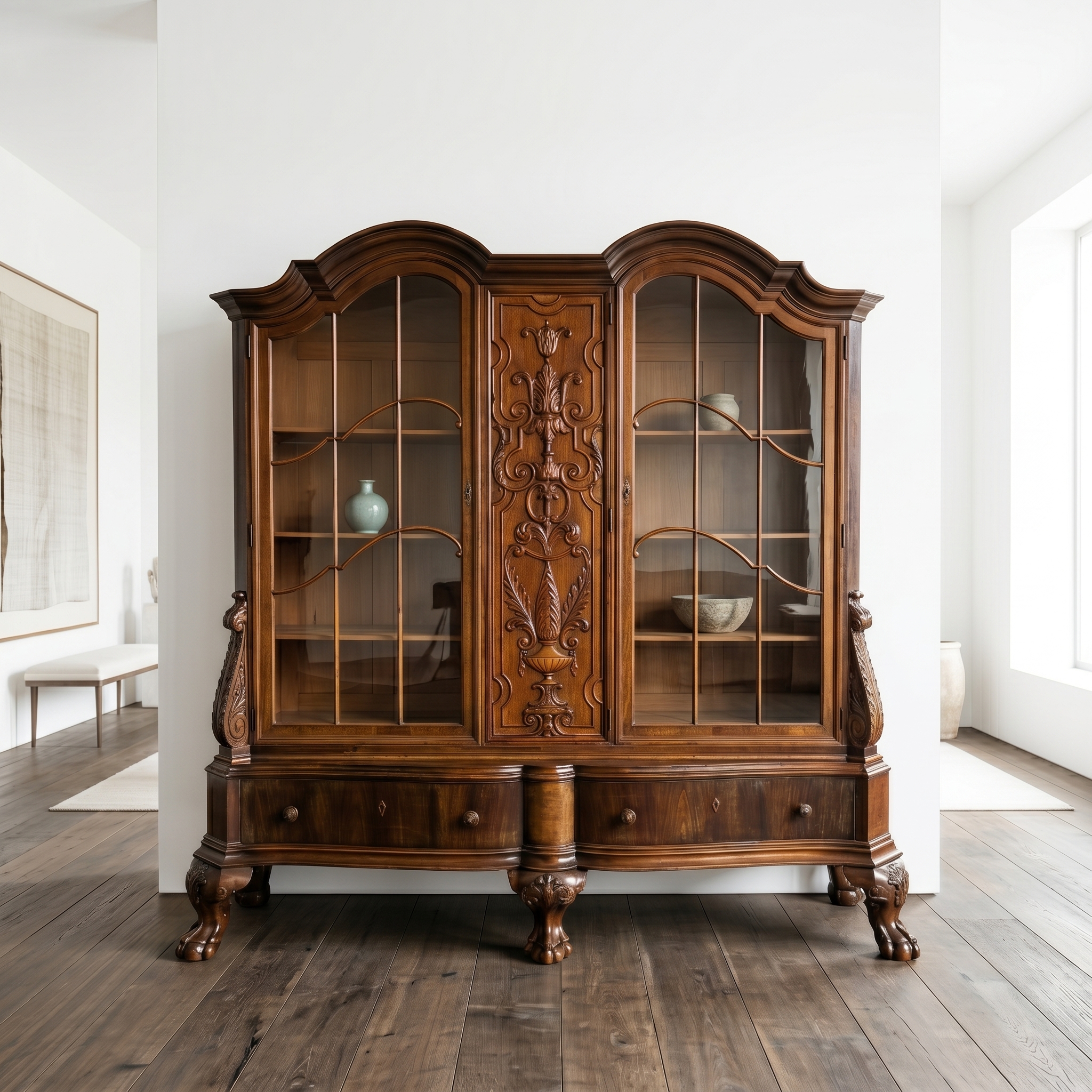 Vitrine Geschirrschrank Neubarock 1900 Nussbaum