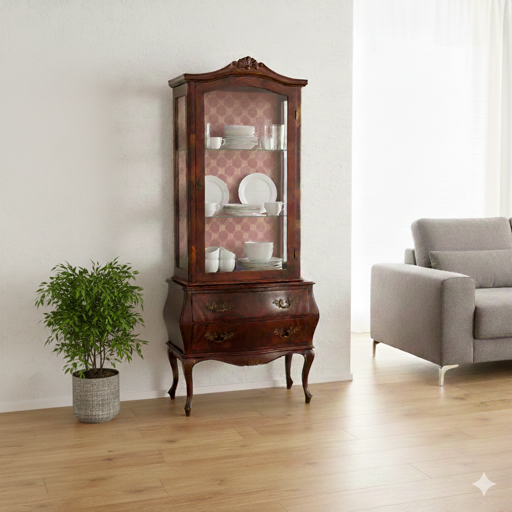 Vitrine Geschirrschrank Neubarock Nussbaum 1,14 m