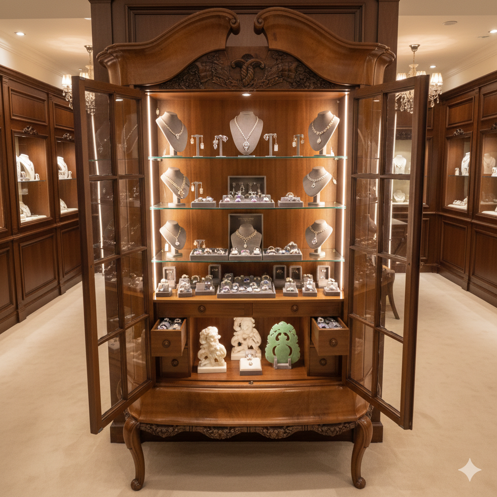 Vitrine Schmuckvitrine Neubarock 1900 Mahagoni