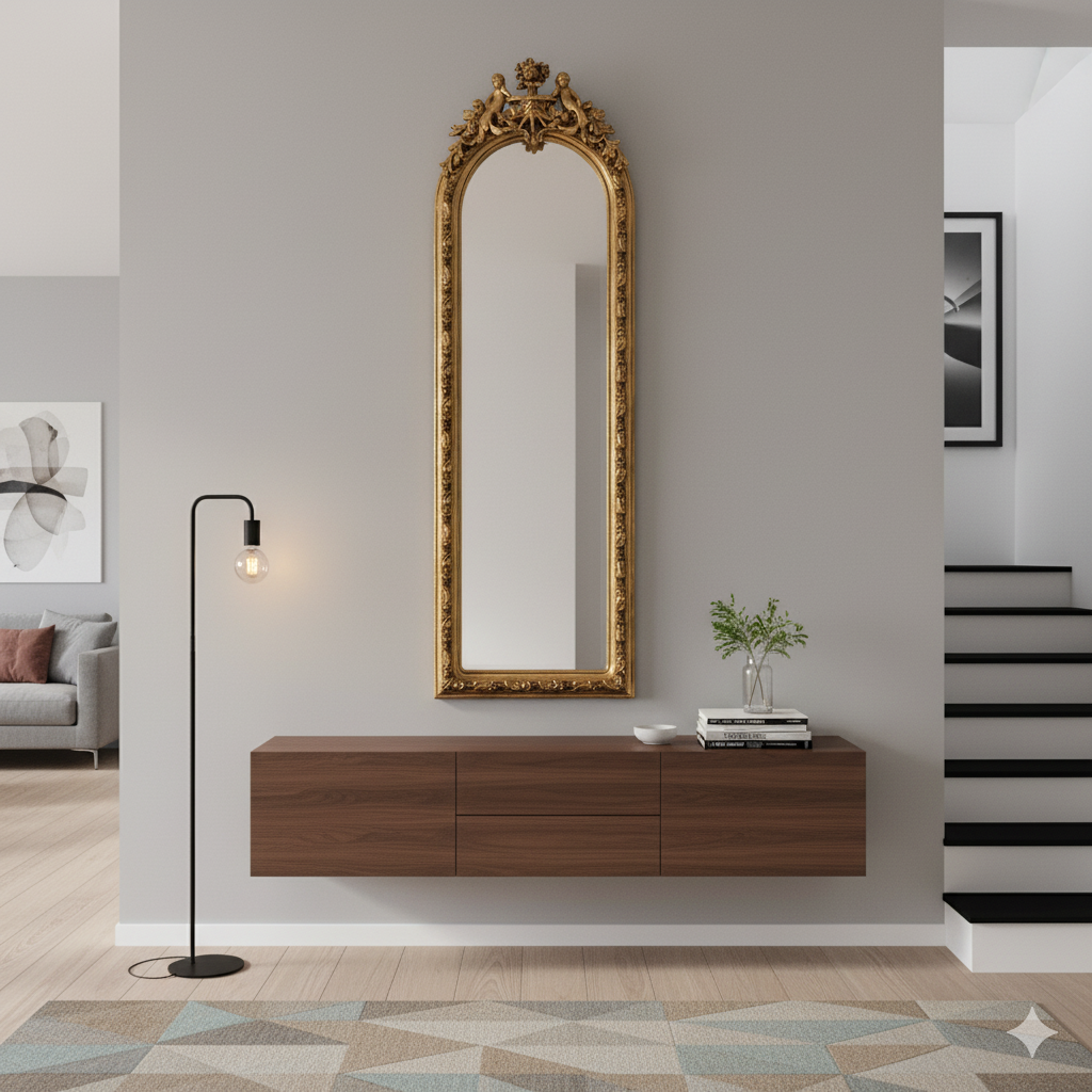 Vielseitige Einsatzmöglichkeiten: Ob im Flur, Wohnzimmer, Schlafzimmer oder Ankleidebereich – dieser Spiegel ist nicht nur ein praktisches Element, sondern auch ein herausragendes Deko-Objekt, das bewundernde Blicke auf sich zieht. Seine Höhe macht ihn ideal als Ganzkörperspiegel, der kleine Räume optisch vergrößert. Die Kombination aus barockem Design und Shabby-Chic macht ihn zu einem vielseitigen Möbelstück, das sich sowohl in klassische als auch in moderne, eklektische oder Landhaus-Einrichtungen harmonisch einfügt.