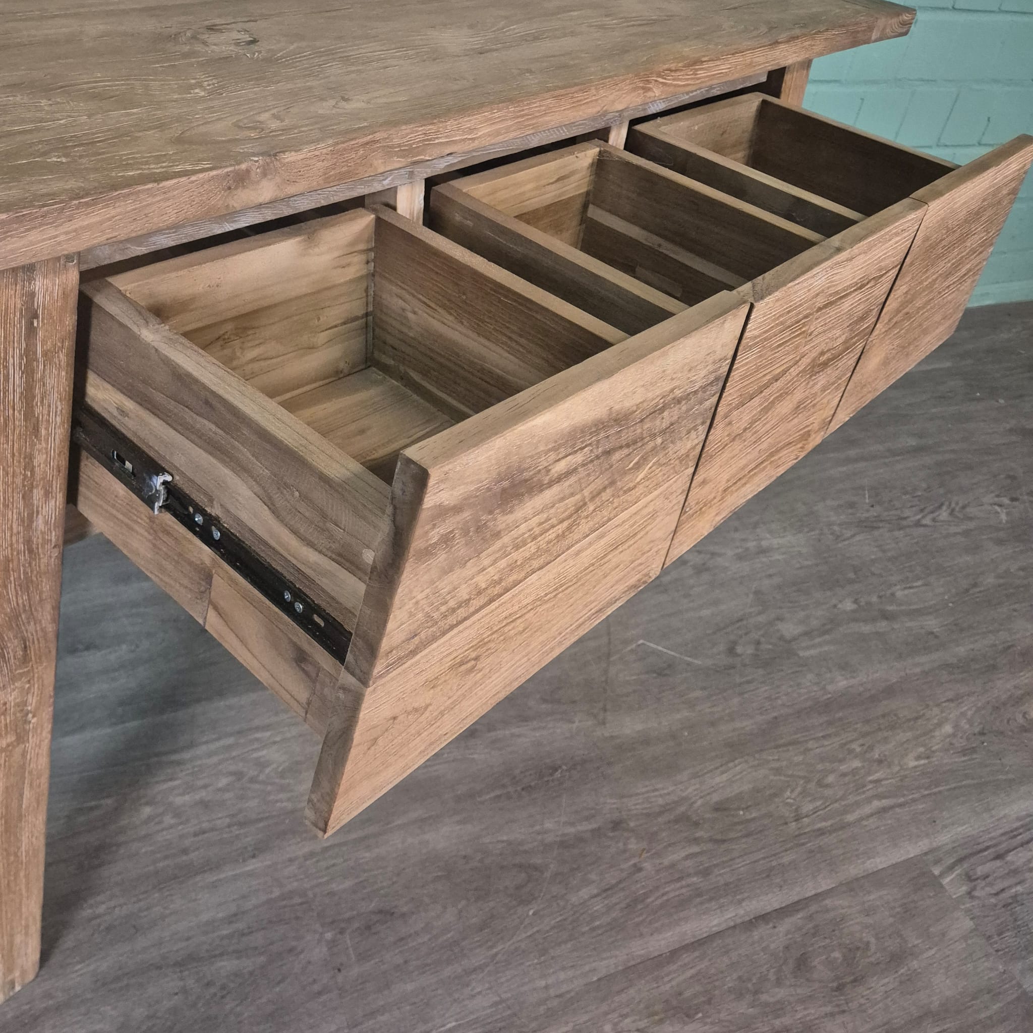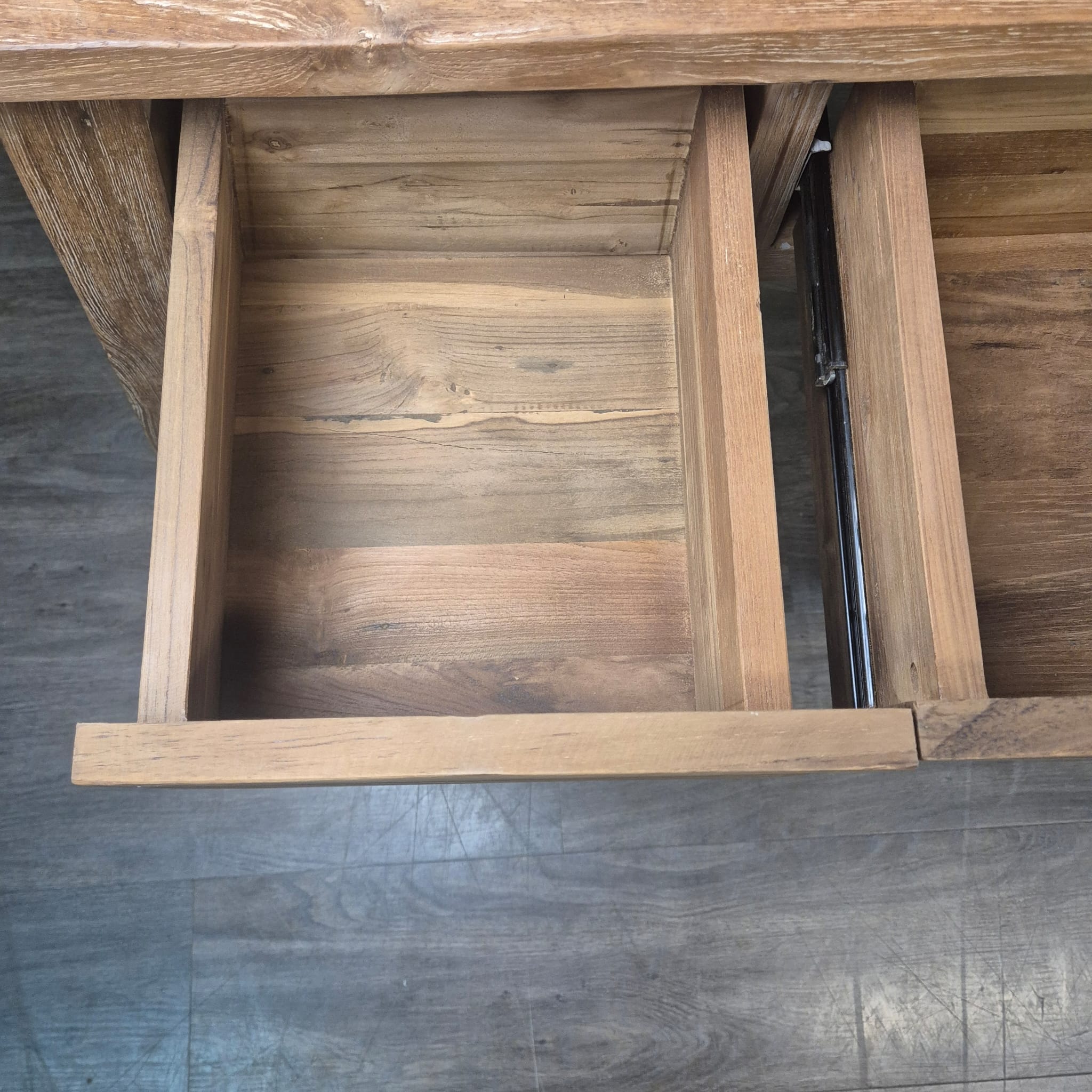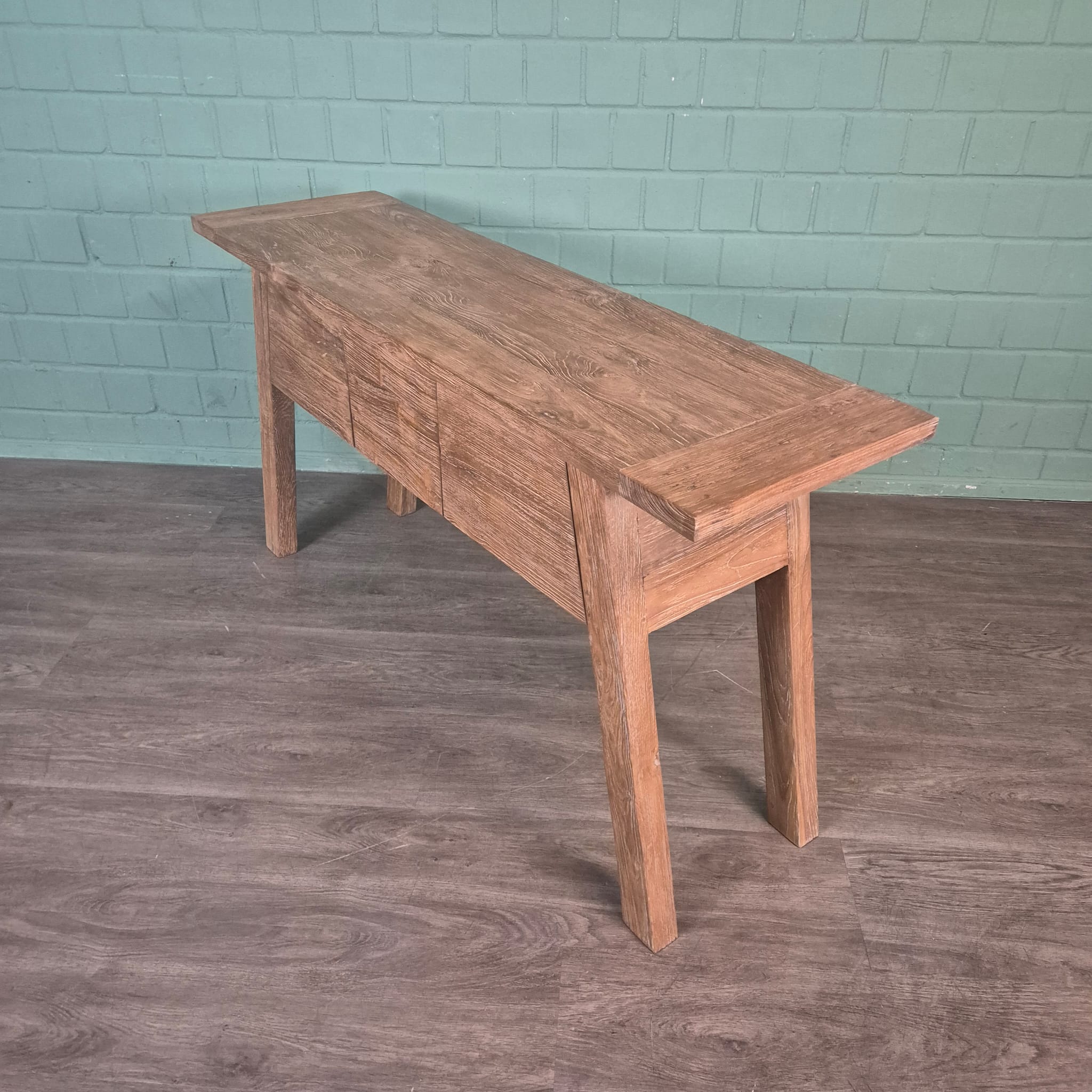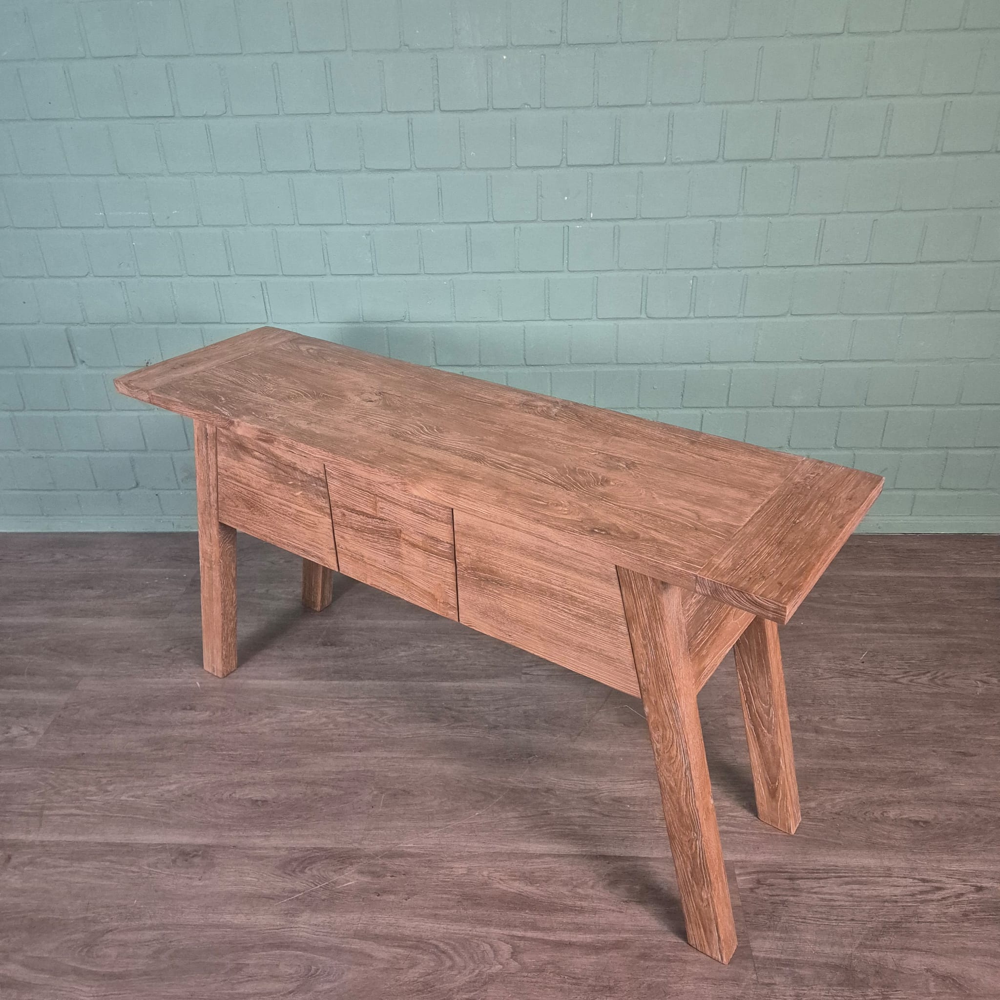 Dieses aufwendig gestaltete Sideboard aus massiv Teakholz (recycelt) erhält seine besondere Wirkung durch natürliche Unregelmäßigkeiten im Holz. Diese entstehen durch das verwendete Edelholz mit seinen verschiedenen Strukturen, welche diesem Stück einen eigentümlichen Charakter verleihen und es zu einem Unikat machen. Machart und Farbton des Holzes tragen sehr zum optischen Wert dieses Möbels bei, das sowohl dekorative Möglichkeiten als auch genügend Stauraum bietet.