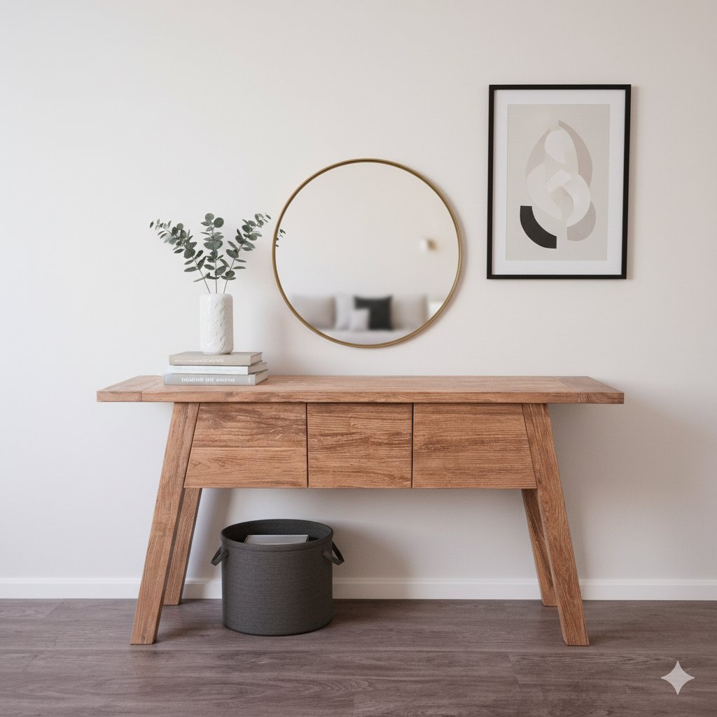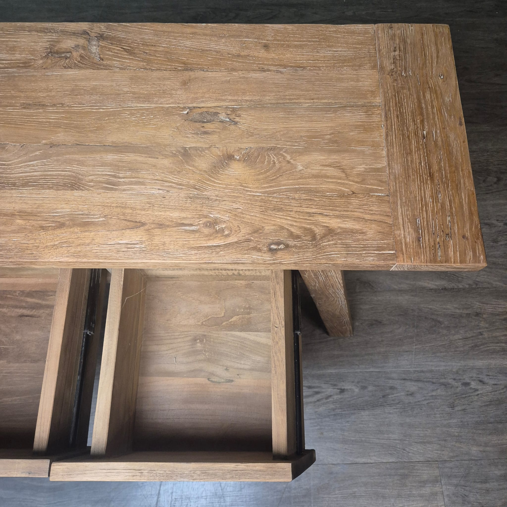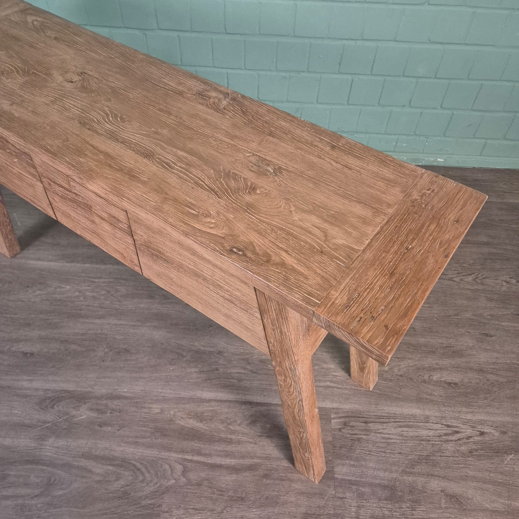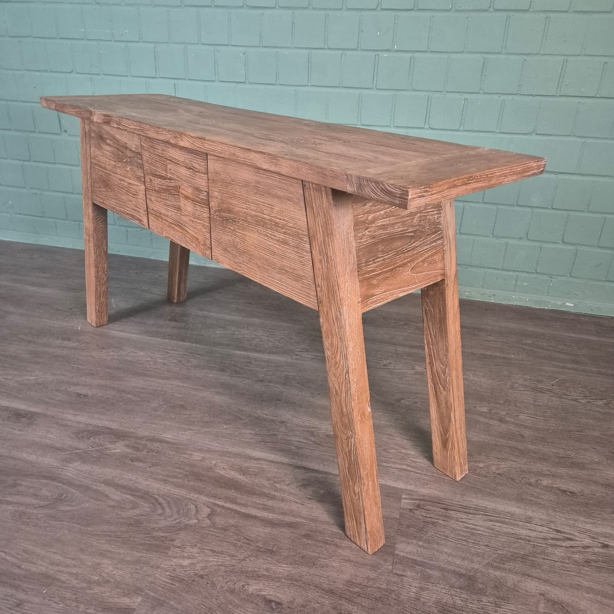 Dieses aufwendig gestaltete Sideboard aus massiv Teakholz (recycelt) erhält seine besondere Wirkung durch natürliche Unregelmäßigkeiten im Holz. Diese entstehen durch das verwendete Edelholz mit seinen verschiedenen Strukturen, welche diesem Stück einen eigentümlichen Charakter verleihen und es zu einem Unikat machen. Machart und Farbton des Holzes tragen sehr zum optischen Wert dieses Möbels bei, das sowohl dekorative Möglichkeiten als auch genügend Stauraum bietet.