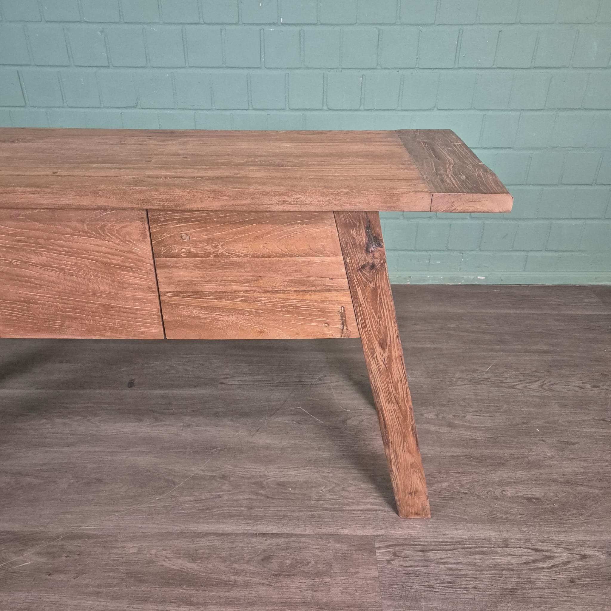 Dieses aufwendig gestaltete Sideboard aus massiv Teakholz (recycelt) erhält seine besondere Wirkung durch natürliche Unregelmäßigkeiten im Holz. Diese entstehen durch das verwendete Edelholz mit seinen verschiedenen Strukturen, welche diesem Stück einen eigentümlichen Charakter verleihen und es zu einem Unikat machen. Machart und Farbton des Holzes tragen sehr zum optischen Wert dieses Möbels bei, das sowohl dekorative Möglichkeiten als auch genügend Stauraum bietet.