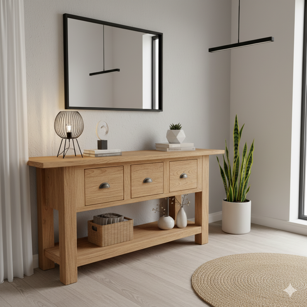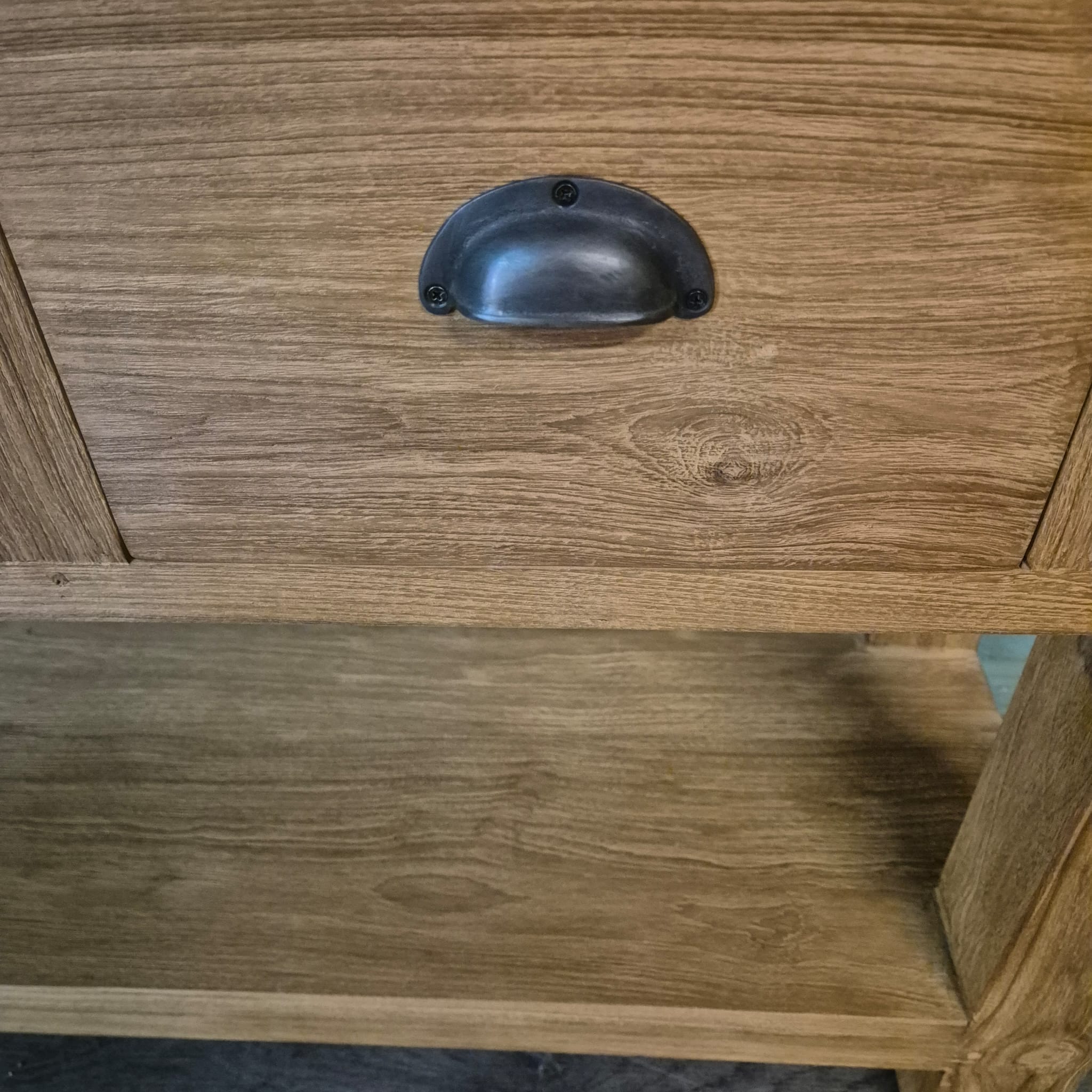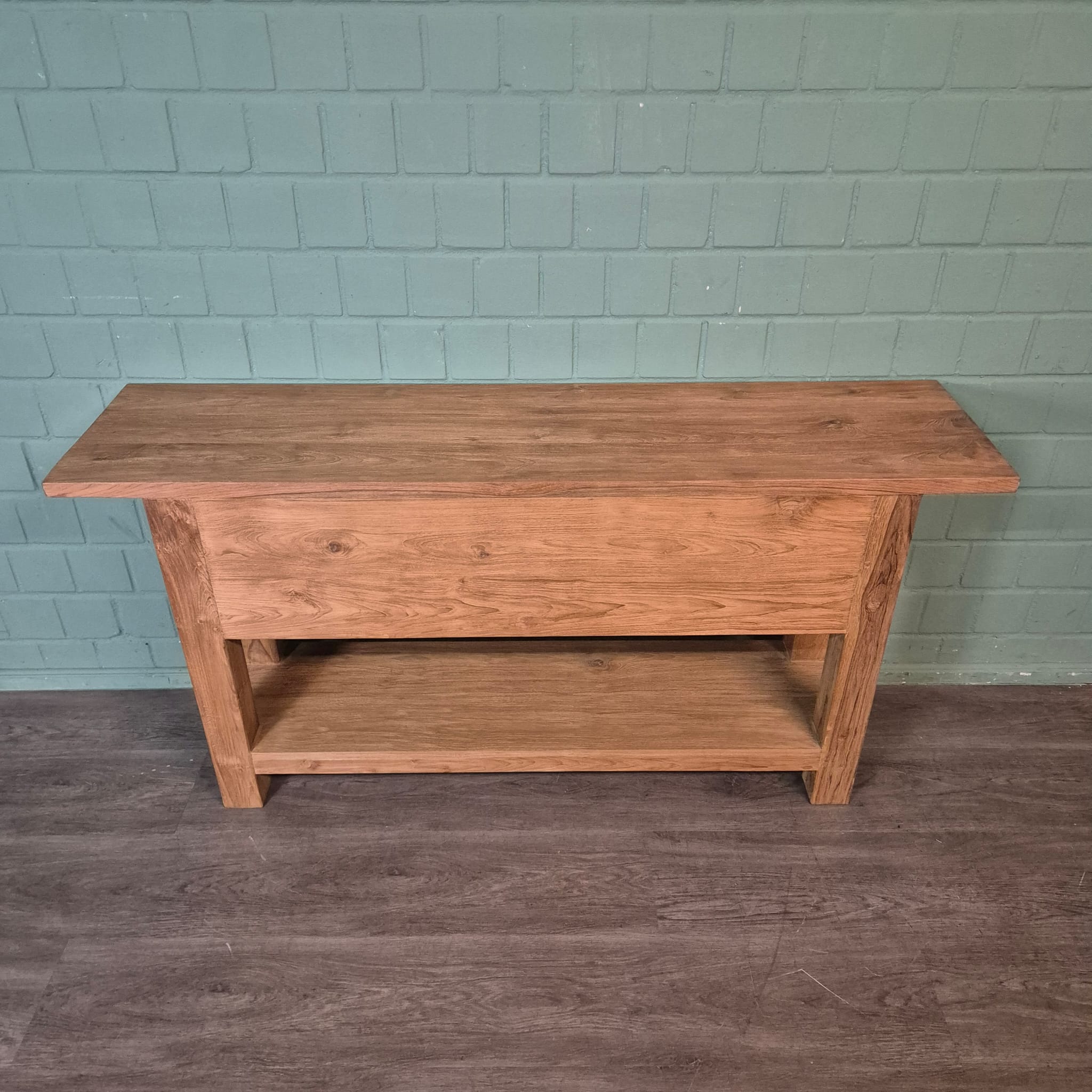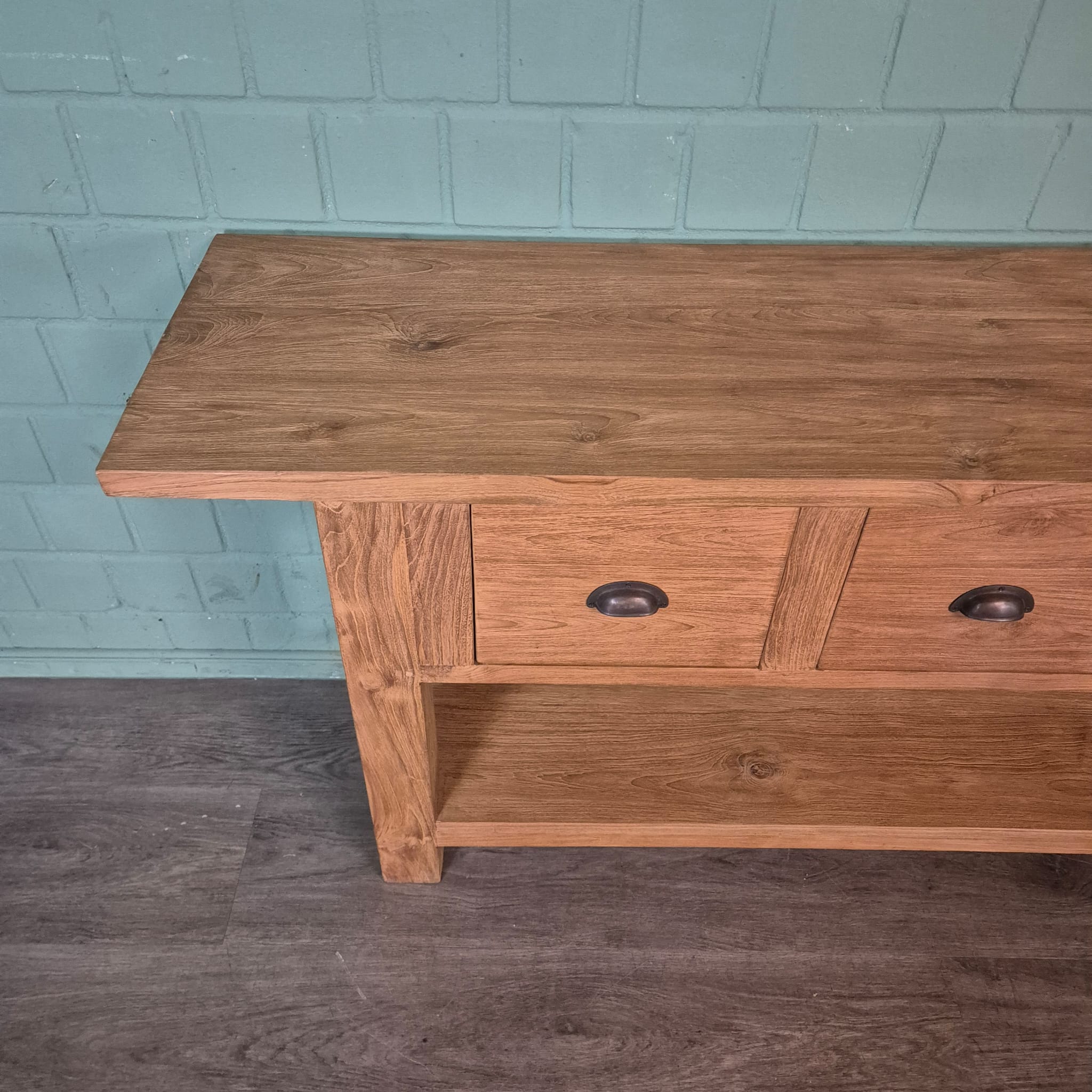 Dieses aufwendig gestaltete Sideboard aus massiv Teakholz erhält seine besondere Wirkung durch natürliche Unregelmäßigkeiten im Holz. Diese entstehen durch das verwendete Edelholz mit seinen verschiedenen Strukturen, welche diesem Stück einen eigentümlichen Charakter verleihen und es zu einem Unikat machen. Machart und Farbton des Holzes tragen sehr zum optischen Wert dieses Möbels bei, das sowohl dekorative Möglichkeiten als auch genügend Stauraum bietet.